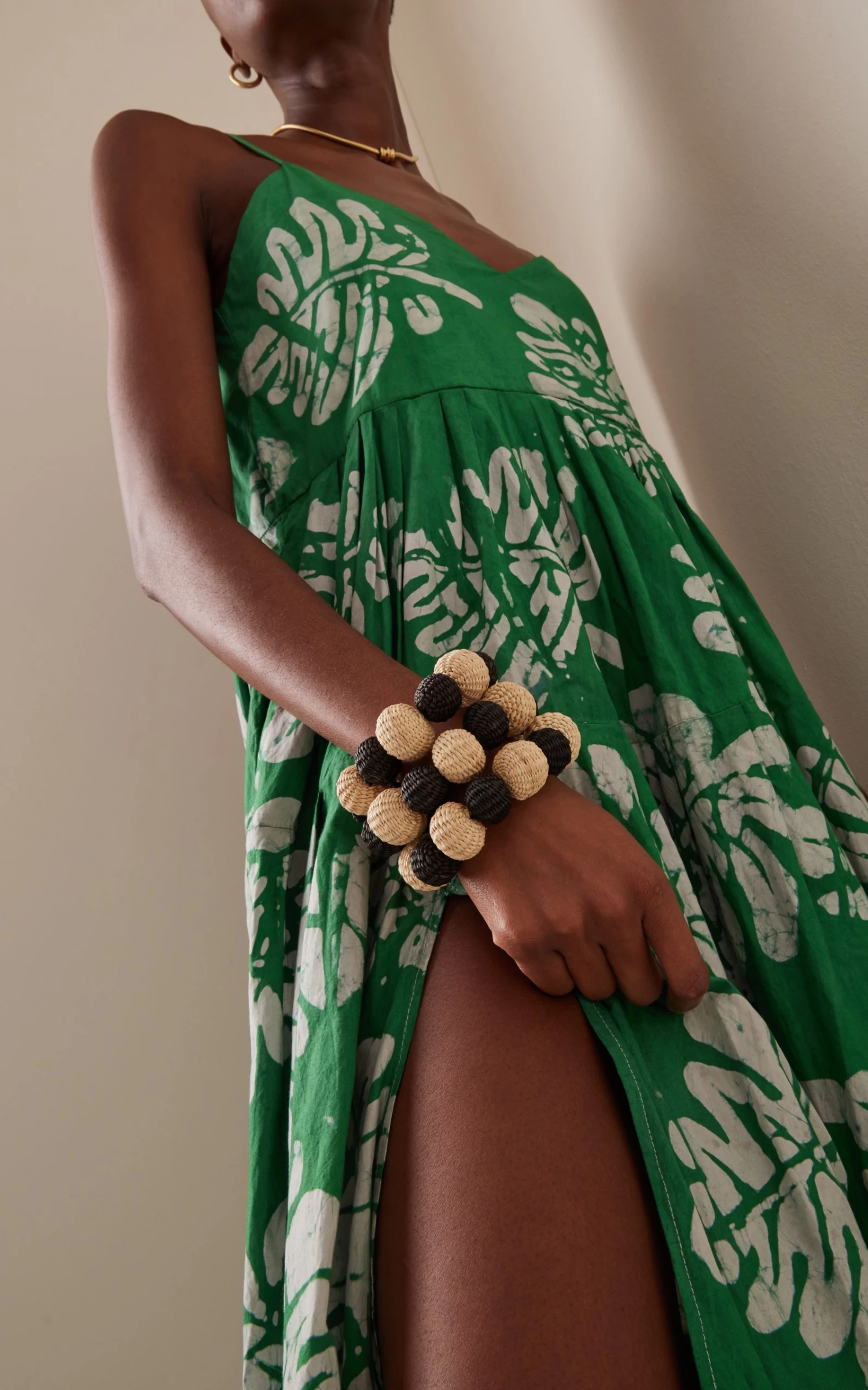 Made from woven natural fiber with viscose and acrylic, this cuff has a multi-bracelet silhouette. Wear yours with a linen dress from the brand.