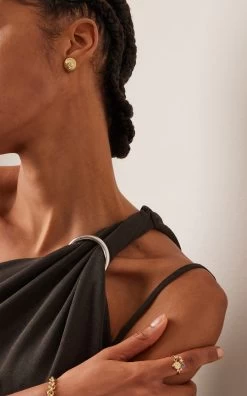 Cast from 18k yellow gold, these stud earrings feature a ‘Kiss Me’ motif accented with white diamonds. Sensual with a sense of humor, they play on the chivalrous gesture that when kissing a lady’s hand, the hand might just kiss back.