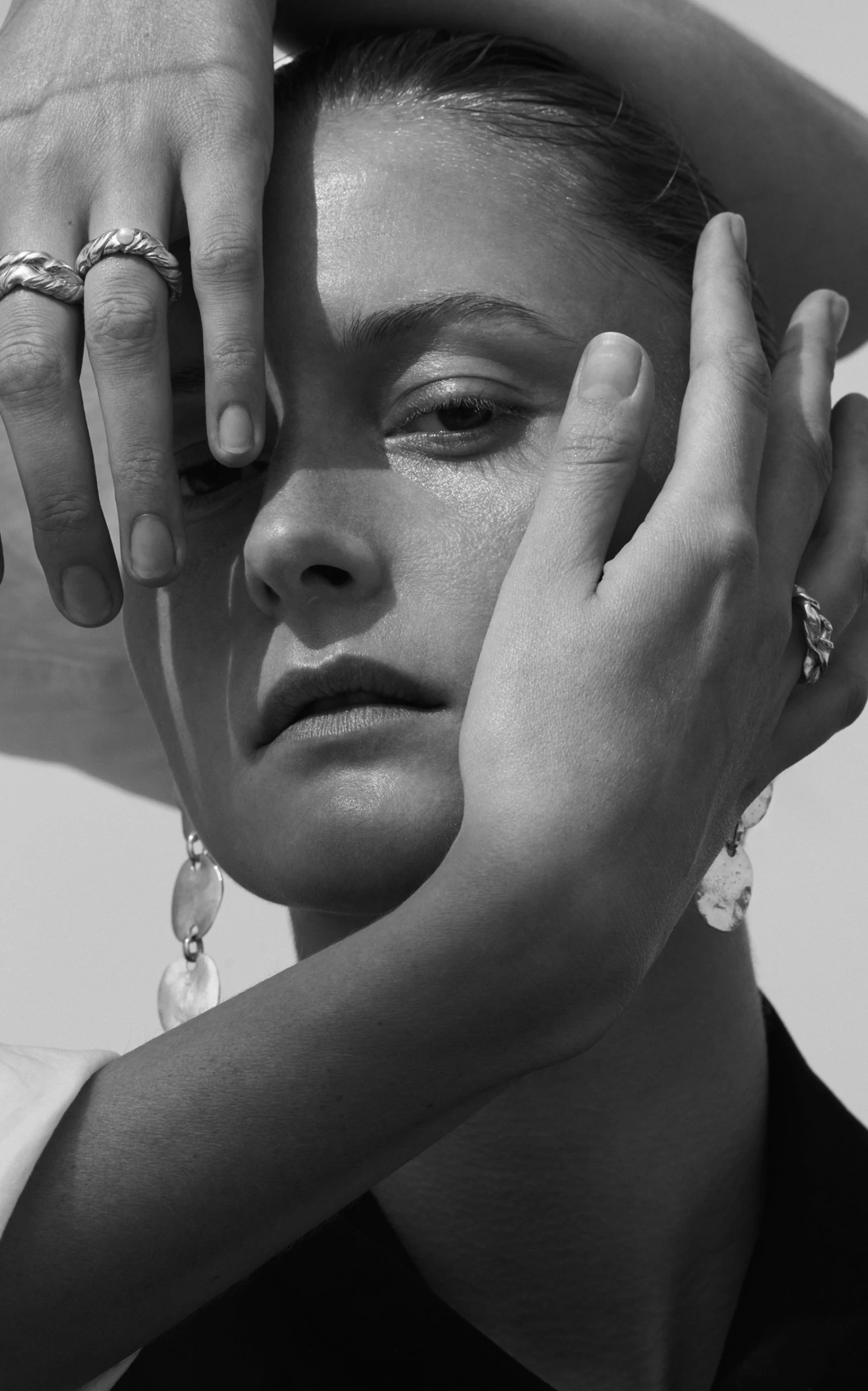 - Multi-drop silhouette, sterling silver body, sculptural circular post and drops, handmade in Copenhagen