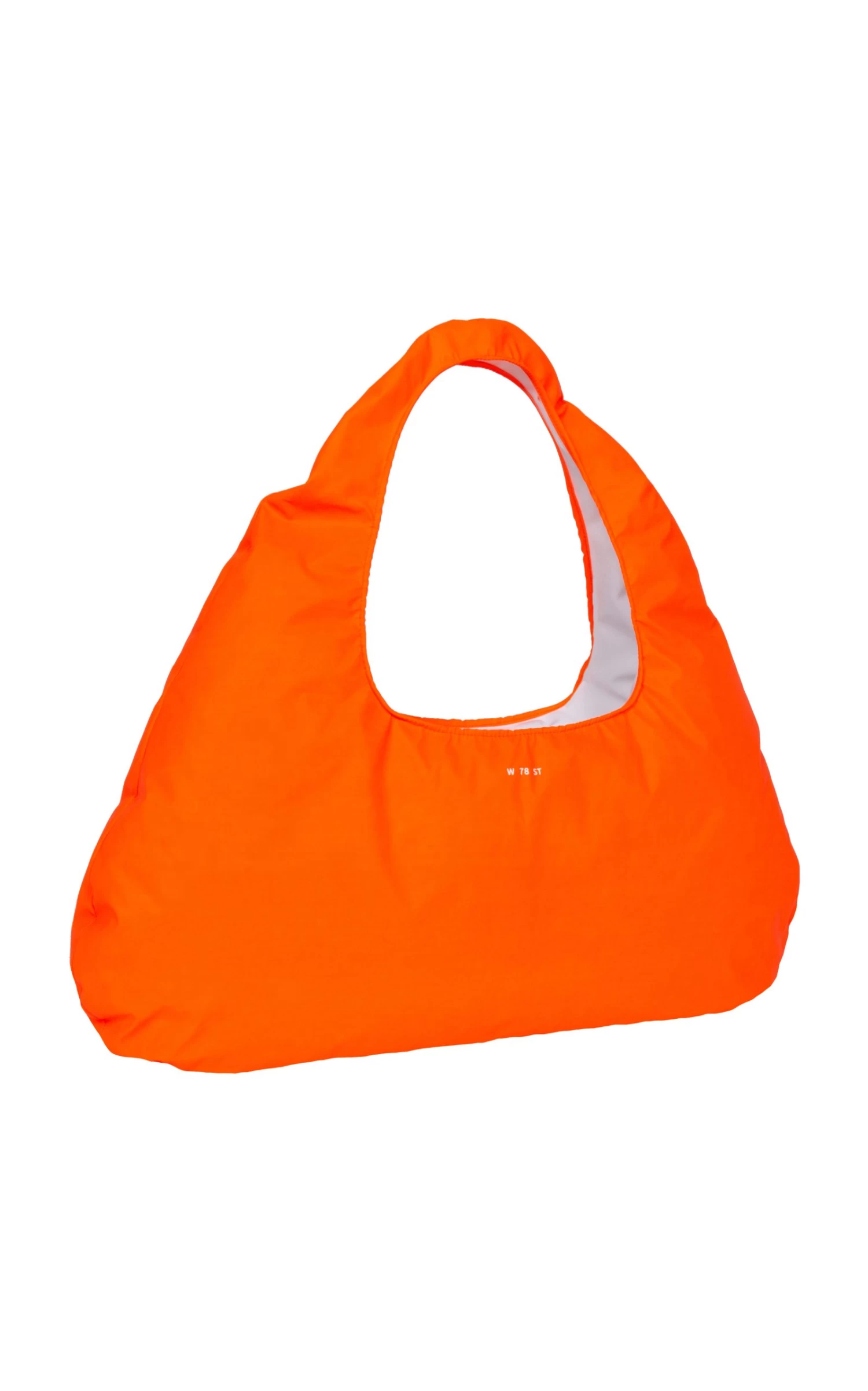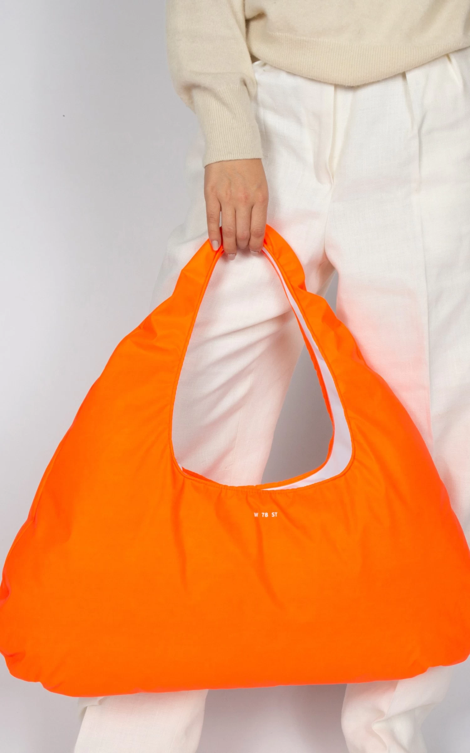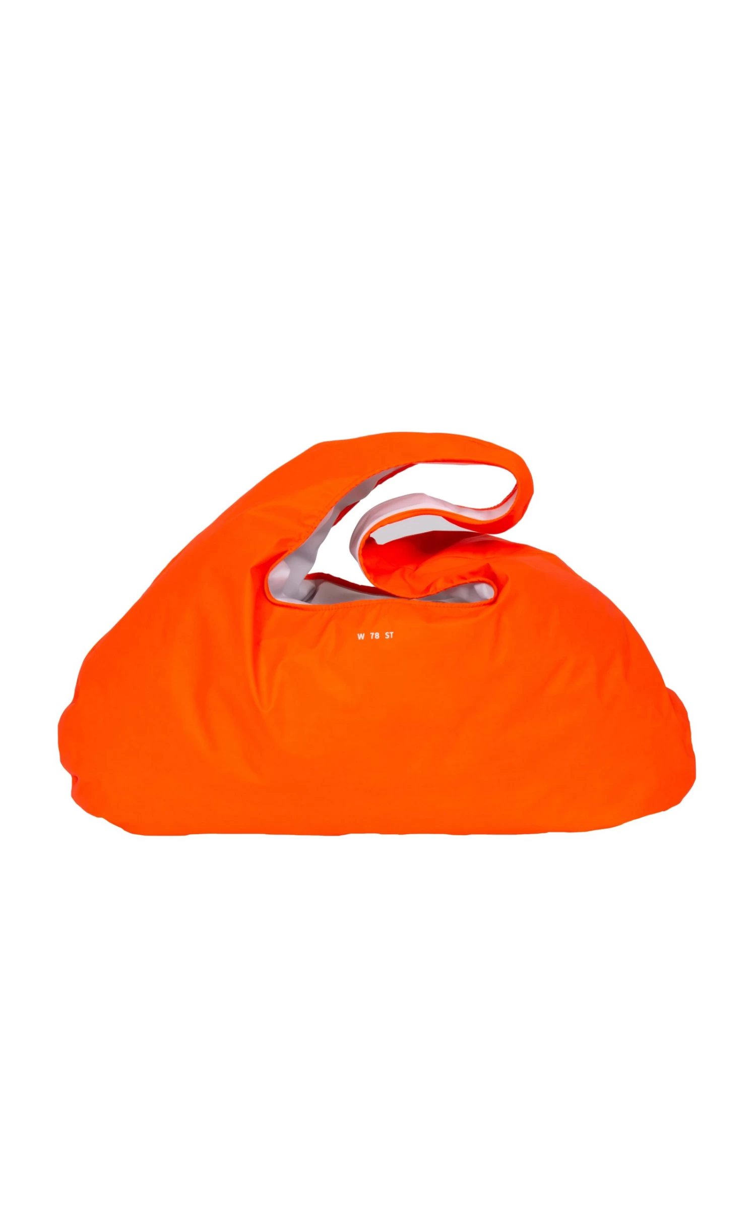 - This version of the cloud bag is constructed with orange flash reflective fabric that complements the down filled inside. For or hand-held or shoulder-length wear and with a durable lining. The cloud bag is accompanied with a dust bag and made in Los Angeles.