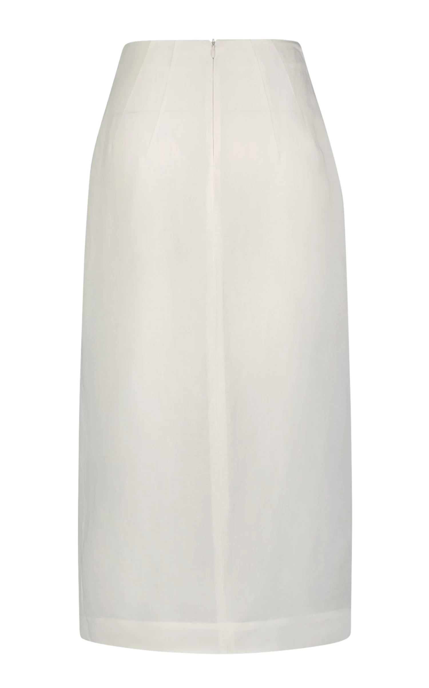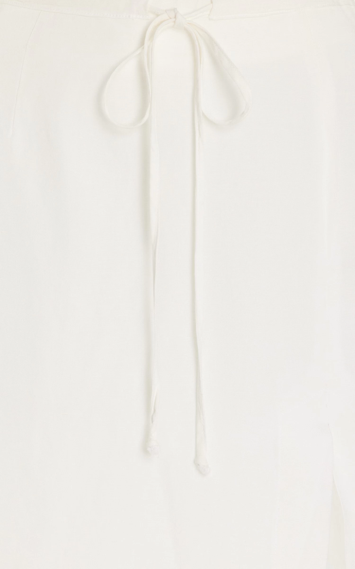 This straight-cut skirt has an easy silhouette made from an airy linen-blend with a thigh-high front slit and drawstring waist for a snug fit. Complete the look with the matching bra top.