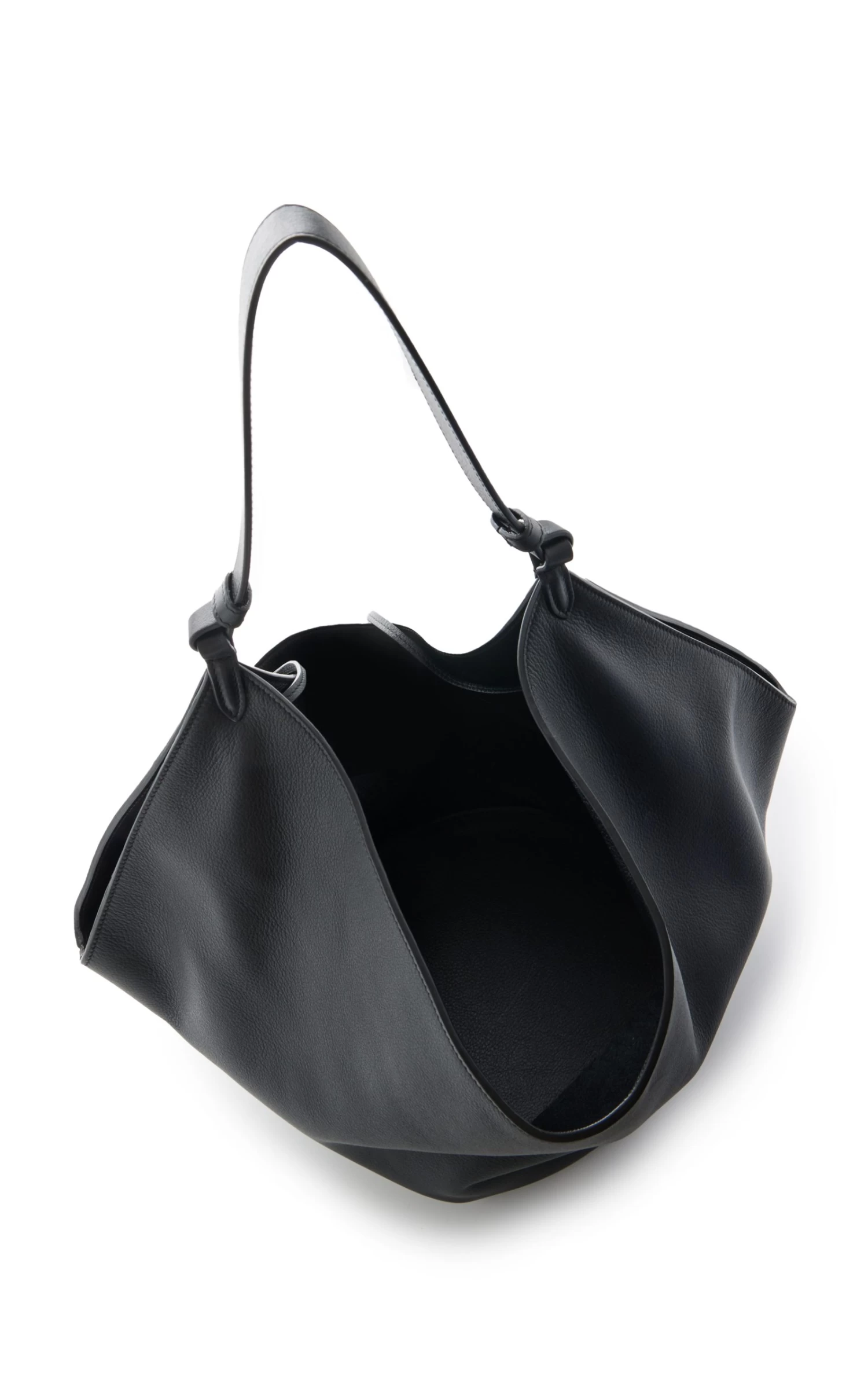 This scarf-inspired tote has a relaxed bucket silhouette made of lightweight calfskin leather accentuating its fluid silhouette and sculptural folds. Crafted in Italy, the medium-sized ‘Lotus’ is free of hardware and finished with tonal topstitching. The rounded base imparts stability when perched on a flat surface.