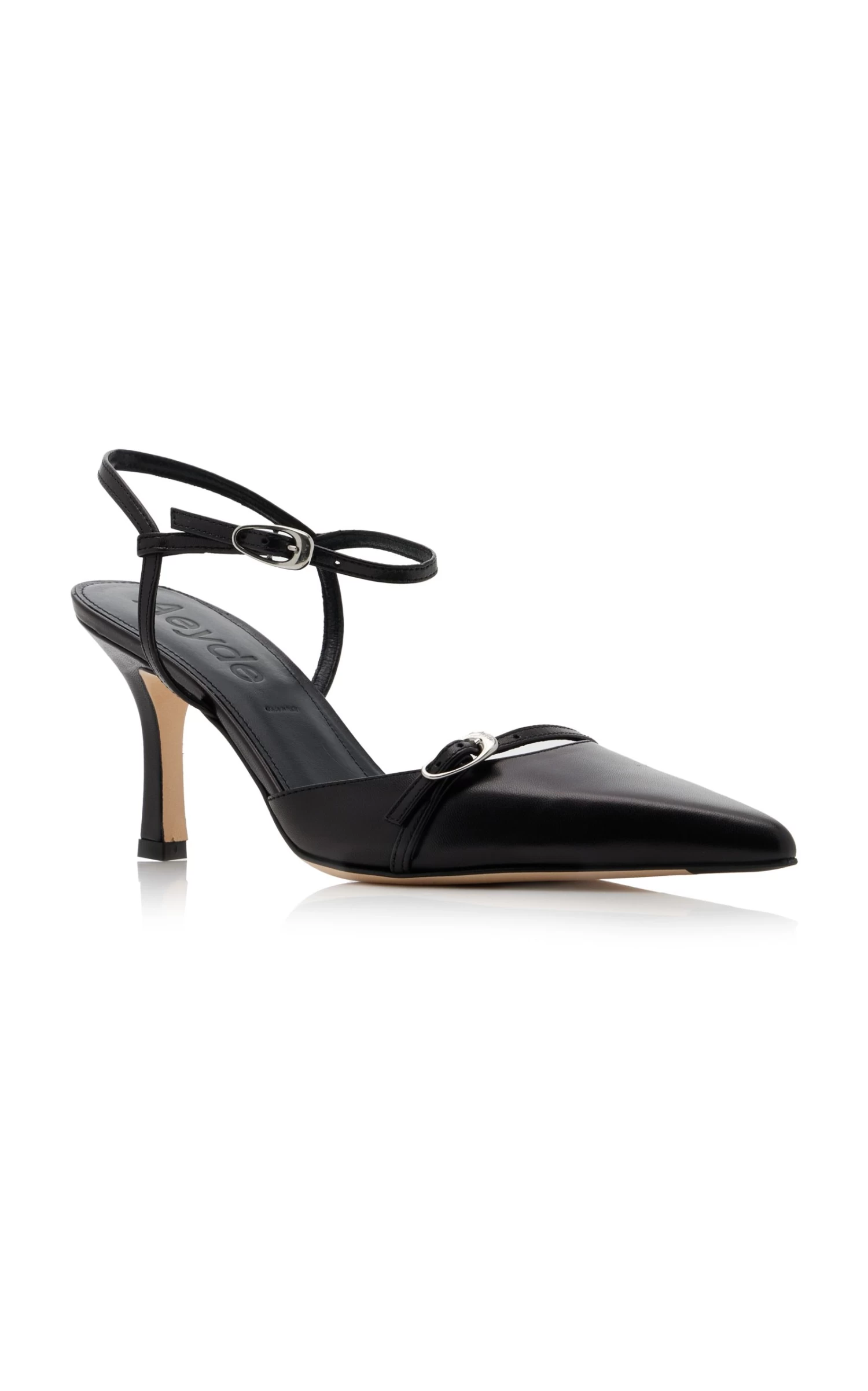 The ‘Marianna’ pumps feature a pointed-toe silhouette and silver-tone buckle details. Pair with trousers and leather accessories for a day look that can easily transition to night.