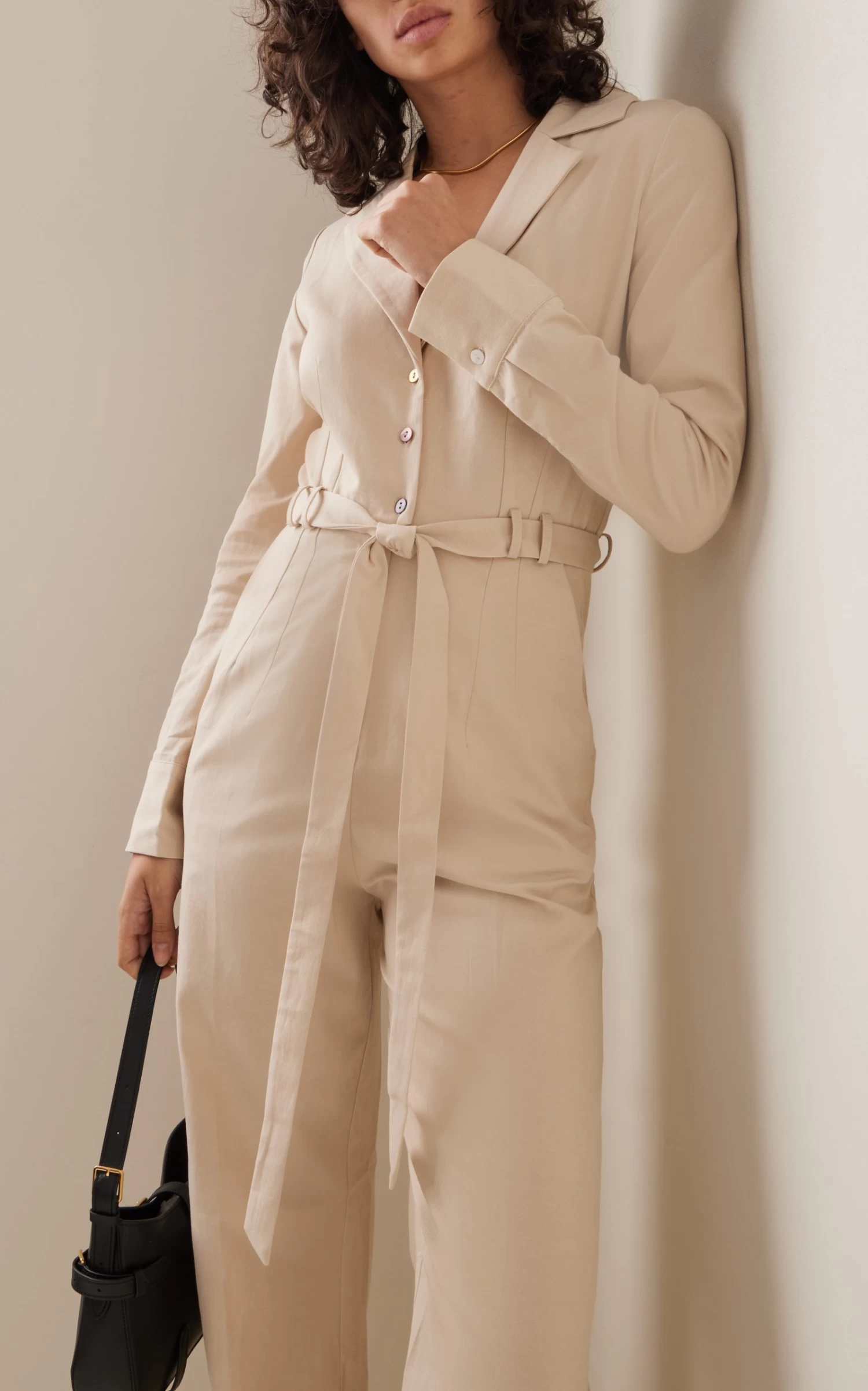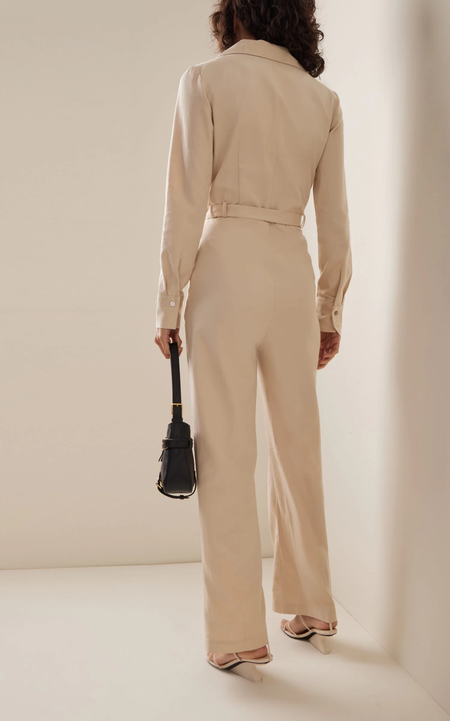 The ‘Marlies’ jumpsuit has a relaxed fit with a lapel neckline and wide leg pants. Style yours with minimal accessories and leather sandals for a chic day look.