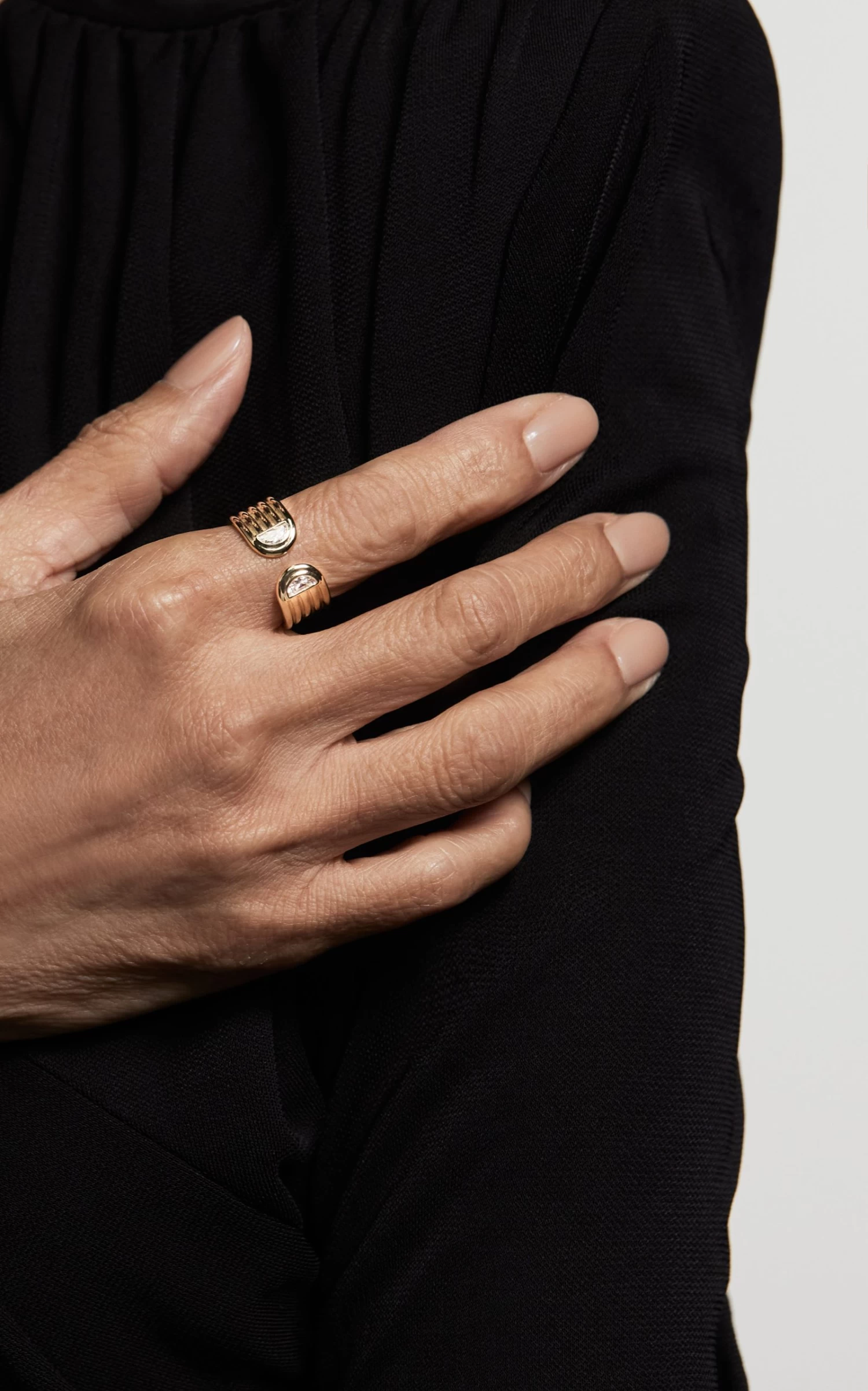 Helmed by a Central Saint Martins-trained jeweler and a former industrial designer, the Singapore-based brand creates stunning sculptural pieces that contrast beautifully with the body’s natural curves.