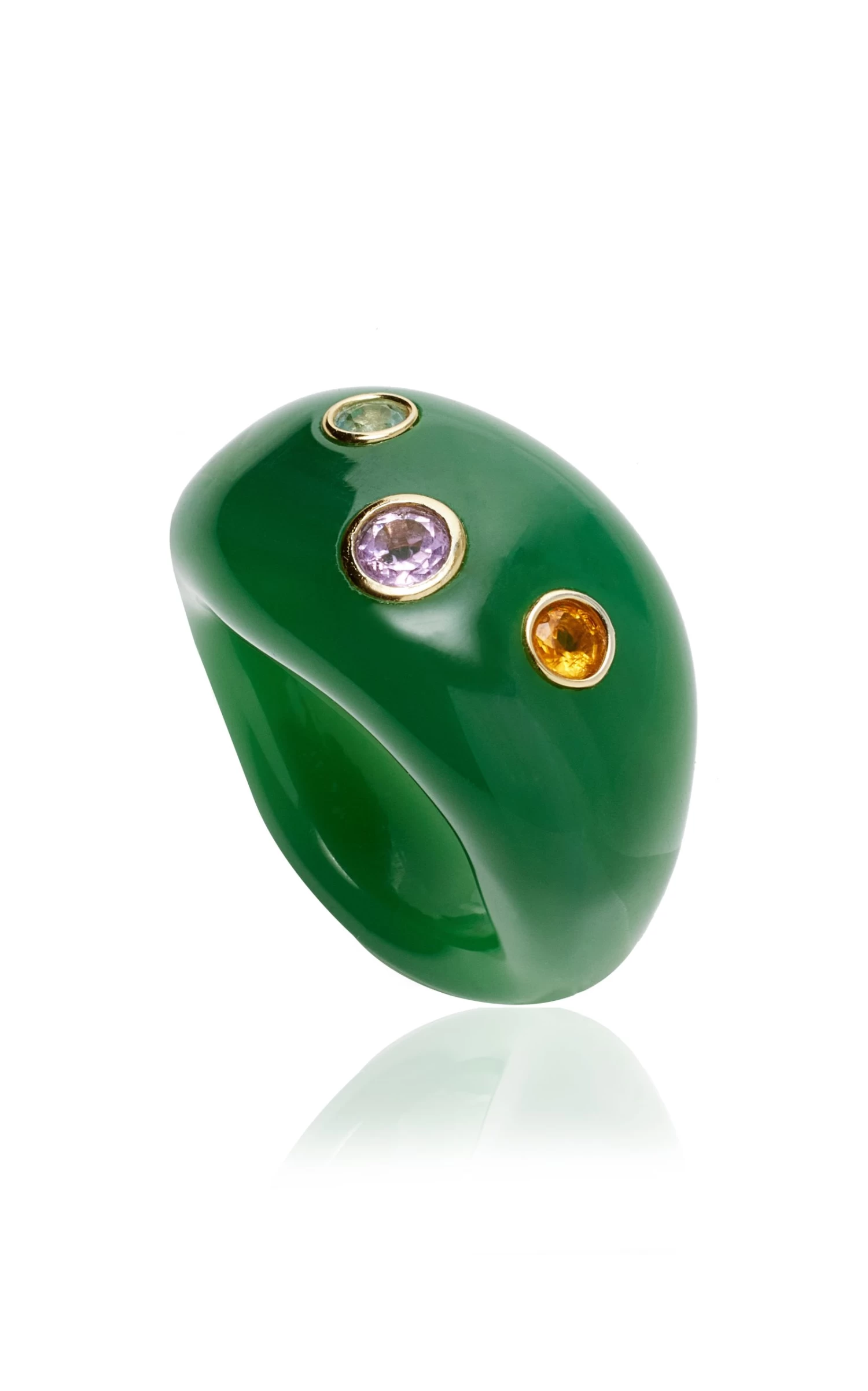 Using an eclectic mix of found materials, Lizzie Fortunato creates statement jewelry imbued with a warm optimism. This season’s lineup offers jolts of uplifting color that can easily be dressed up or down.