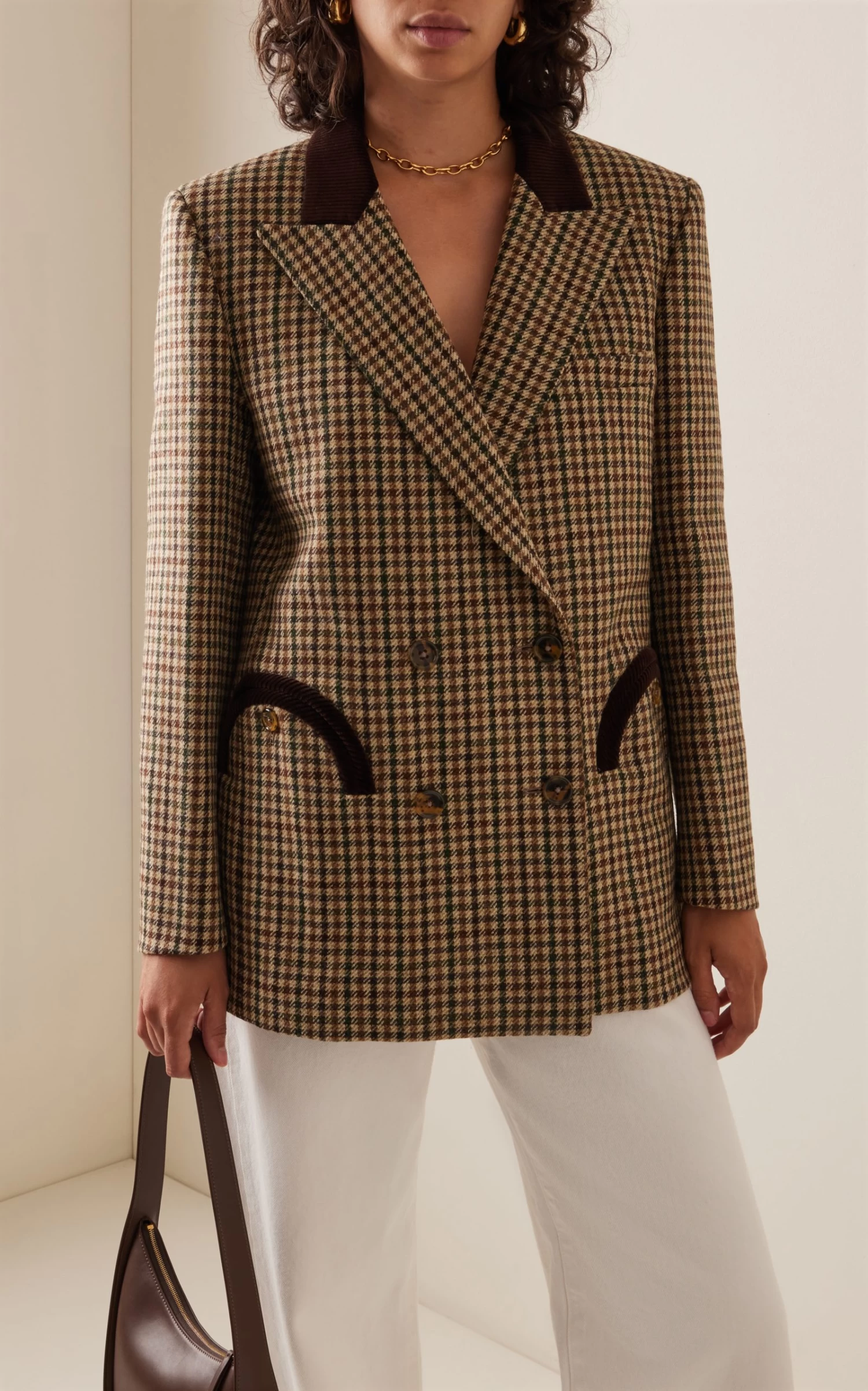 The ‘Everynight’ blazer has an oversized fit tailored from checked wool detailed with a cotton corduroy collar and the label’s signature curved pockets. This is one of those key pieces you will wear forever.