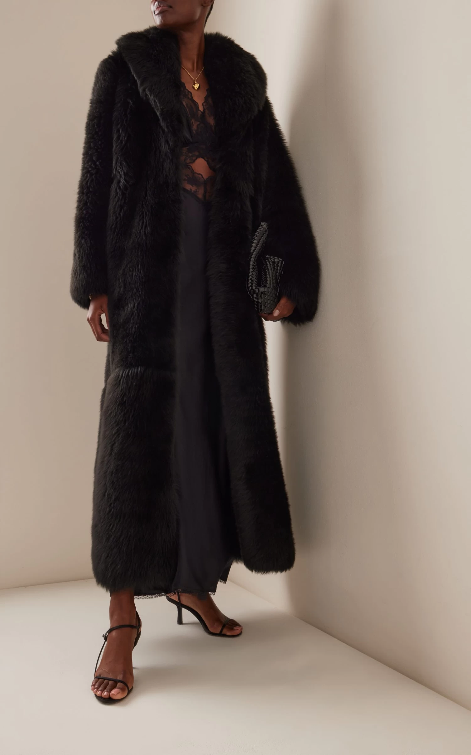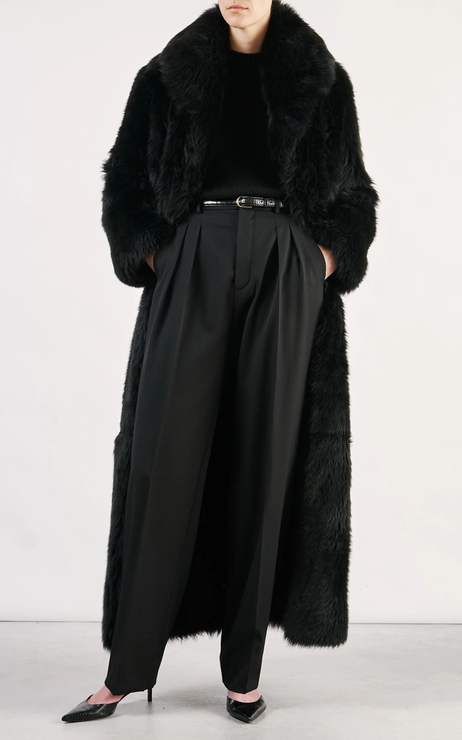 This ‘Damien’ coat has a longline ankle-length silhouette made from ultra-luxe lambskin that hangs off the body so beautifully. Wear it over evening and casual tailored separates alike.