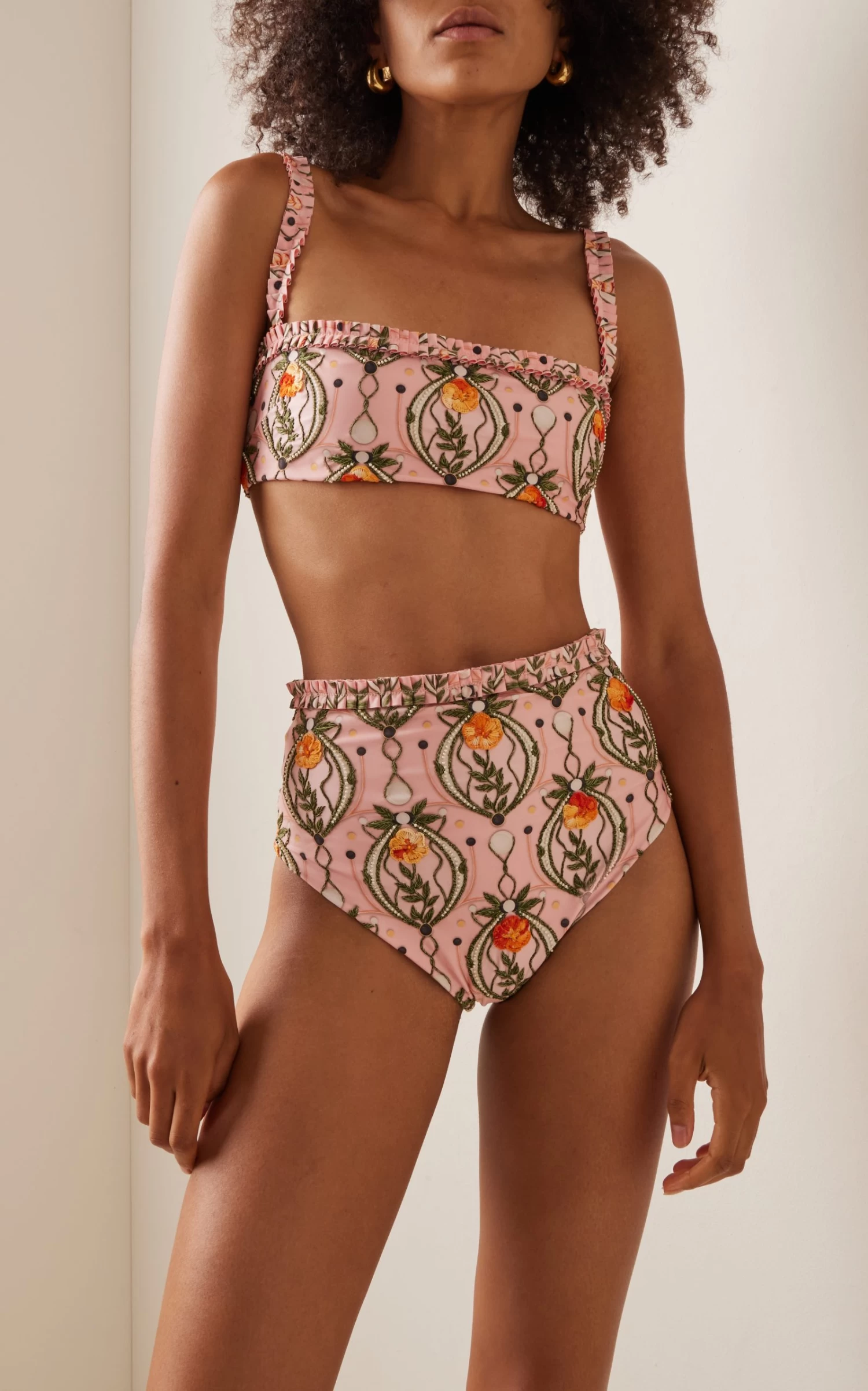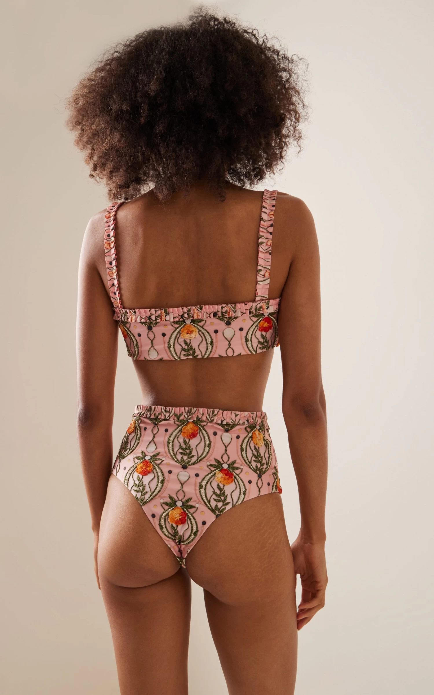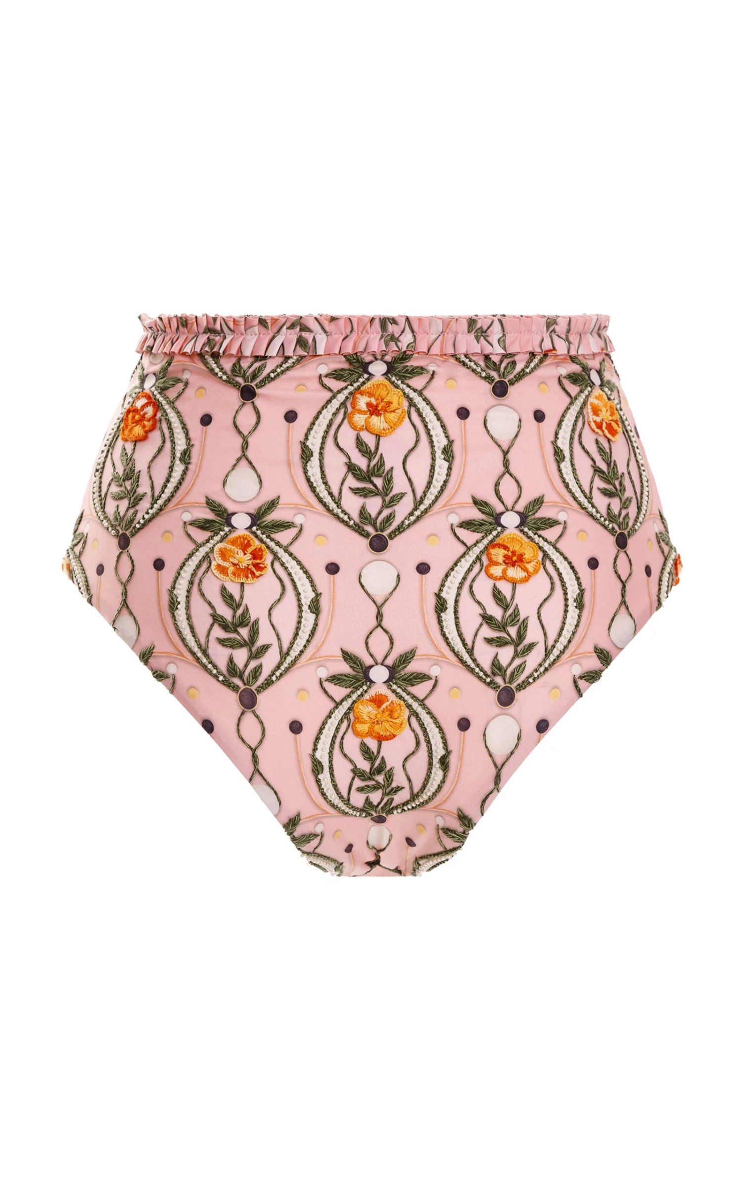 The ‘Nopal Lunar’ bikini bottom is embroidered with a high waist and ruffled trim. Complete the set and pair yours with the matching top.