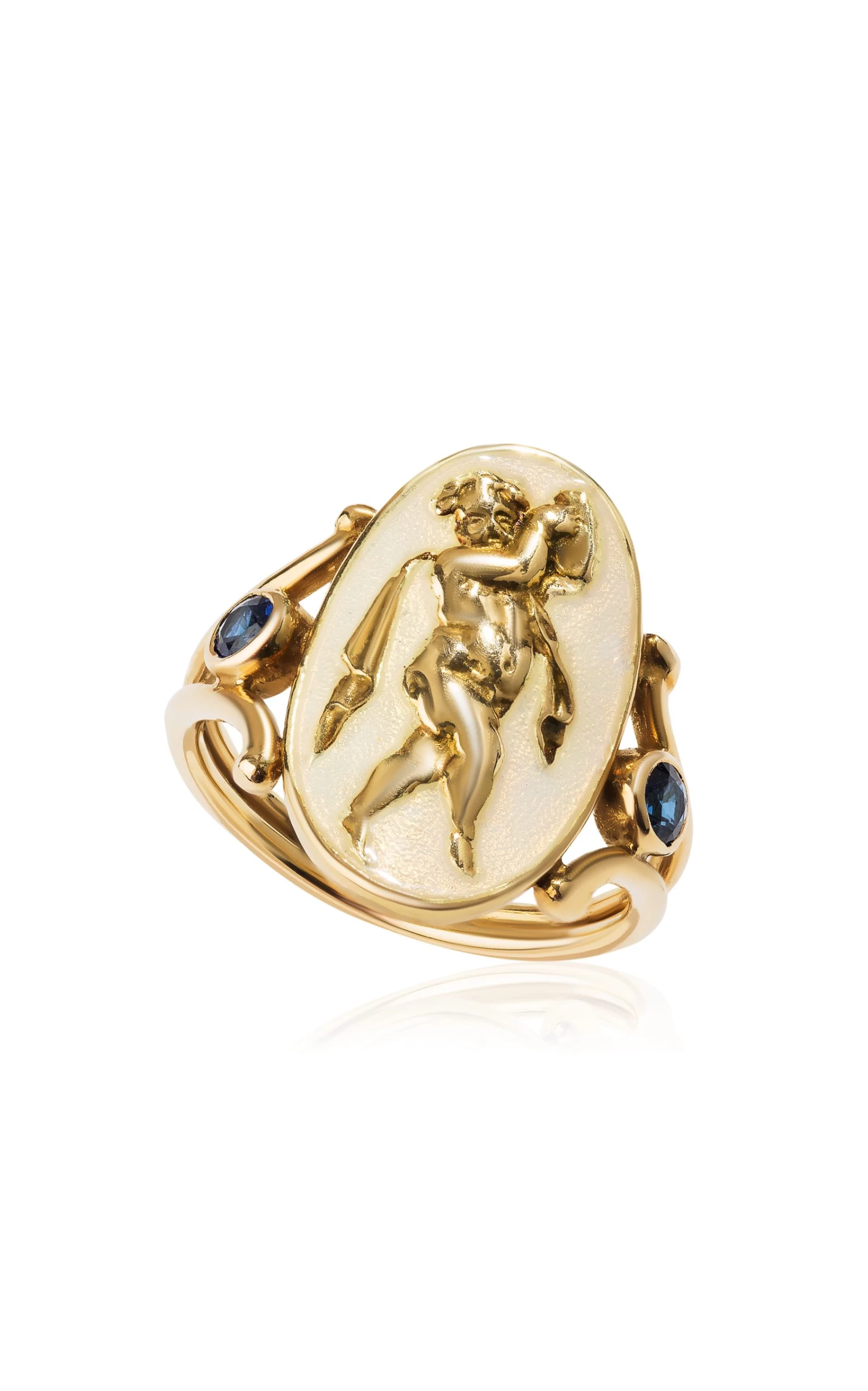 From the ‘Romantica’ collection inspired by Ancient Rome, the one-of-a-kind ‘Danzante’ ring features a vignette of a dancing nymph with with sapphires at each side.
