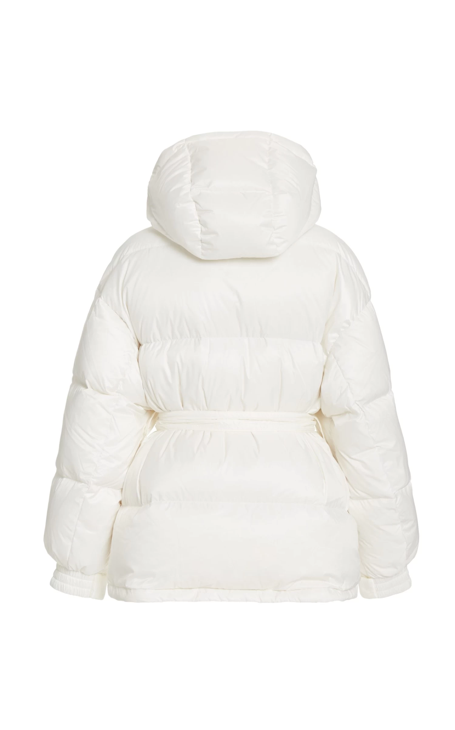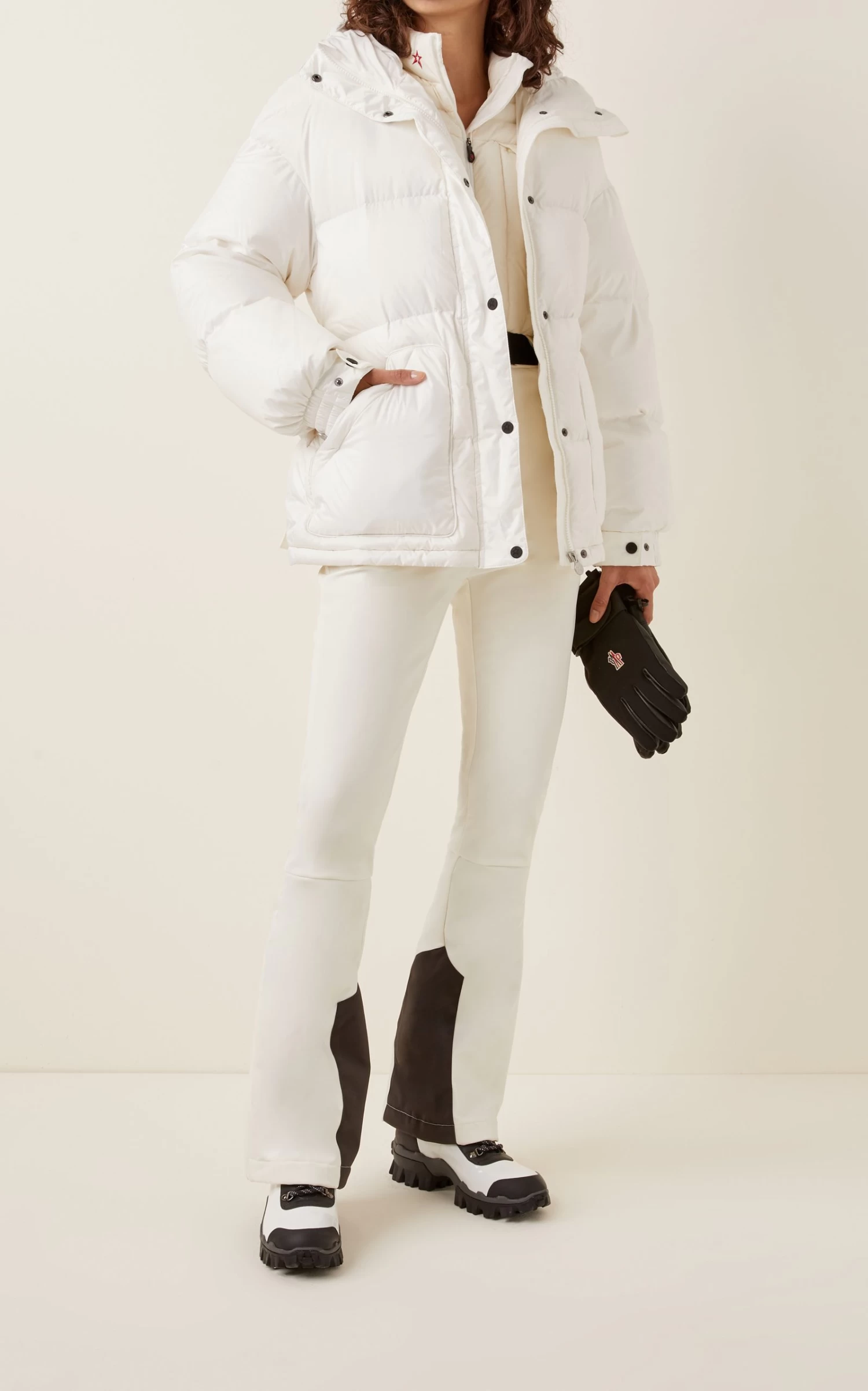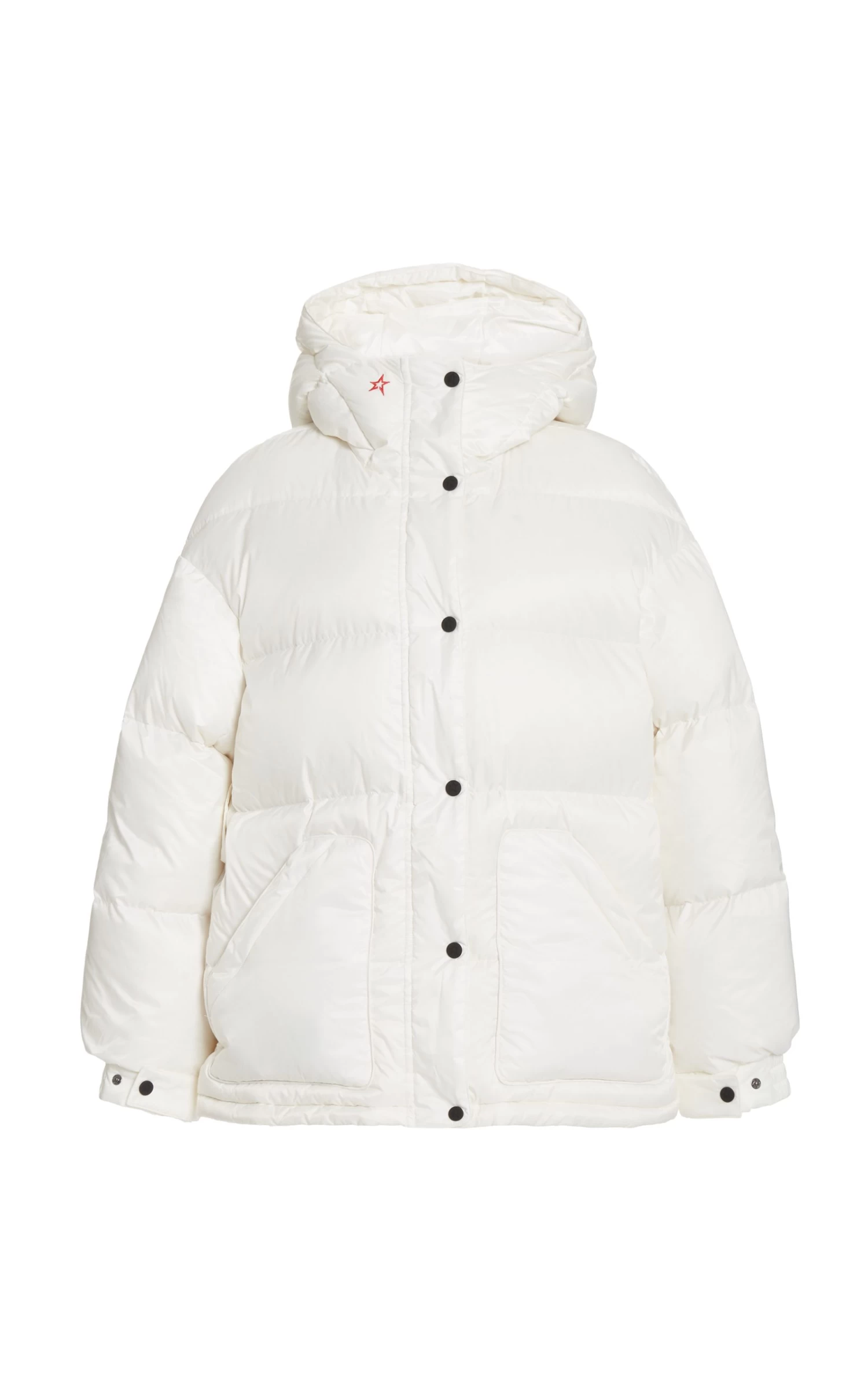 Hit the slopes in Perfect Moment’s puffed parka. This iteration has an oversized silhouette, detailed with a hooded funnel neck, dual front pockets, and belted waist. Pair it with ski-wear in similar hues to complete the look.