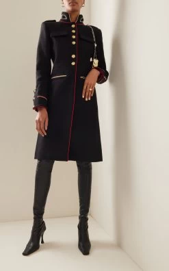 Made from a wool blend, this military inspired coat has a stand collar and contrast trim. Wear yours with a t-shirt and tailored pants for a look inspired by the brand.