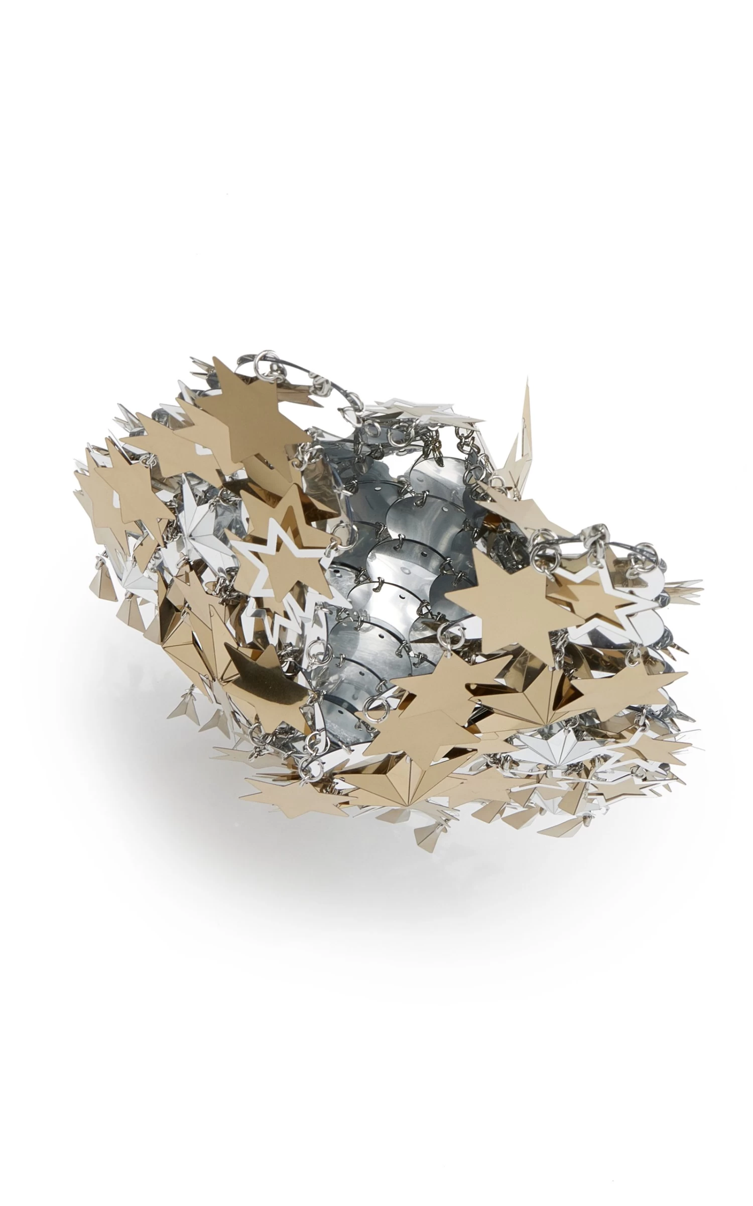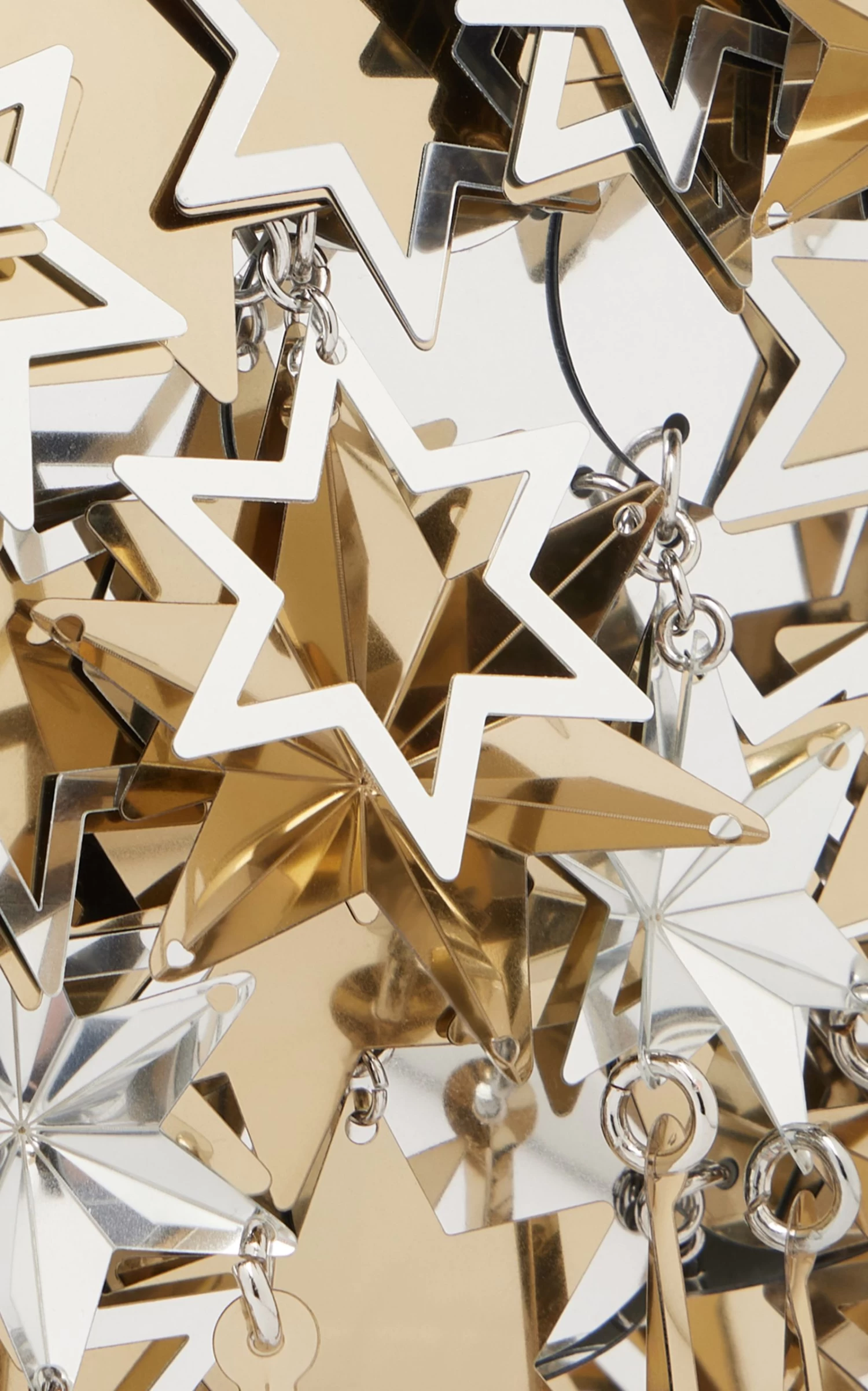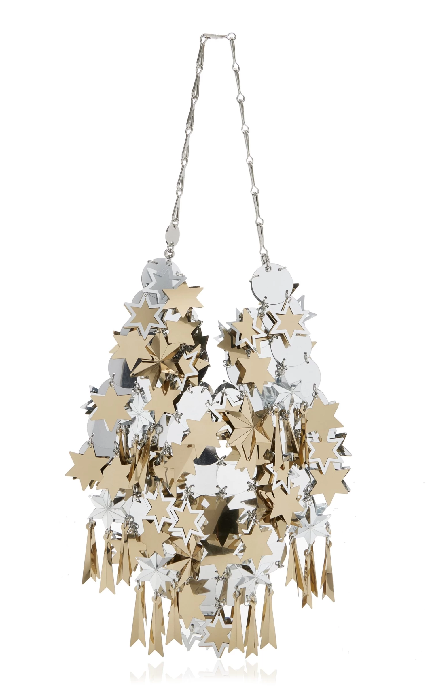 Constructed into a shoulder silhouette with adjustable chain strapping, this ‘Sparkle Nano’ bag has a silver-tone brass chainmail body, decorated with plastic multi-tone star embellishments. Carry this statement piece with you for your next night out.