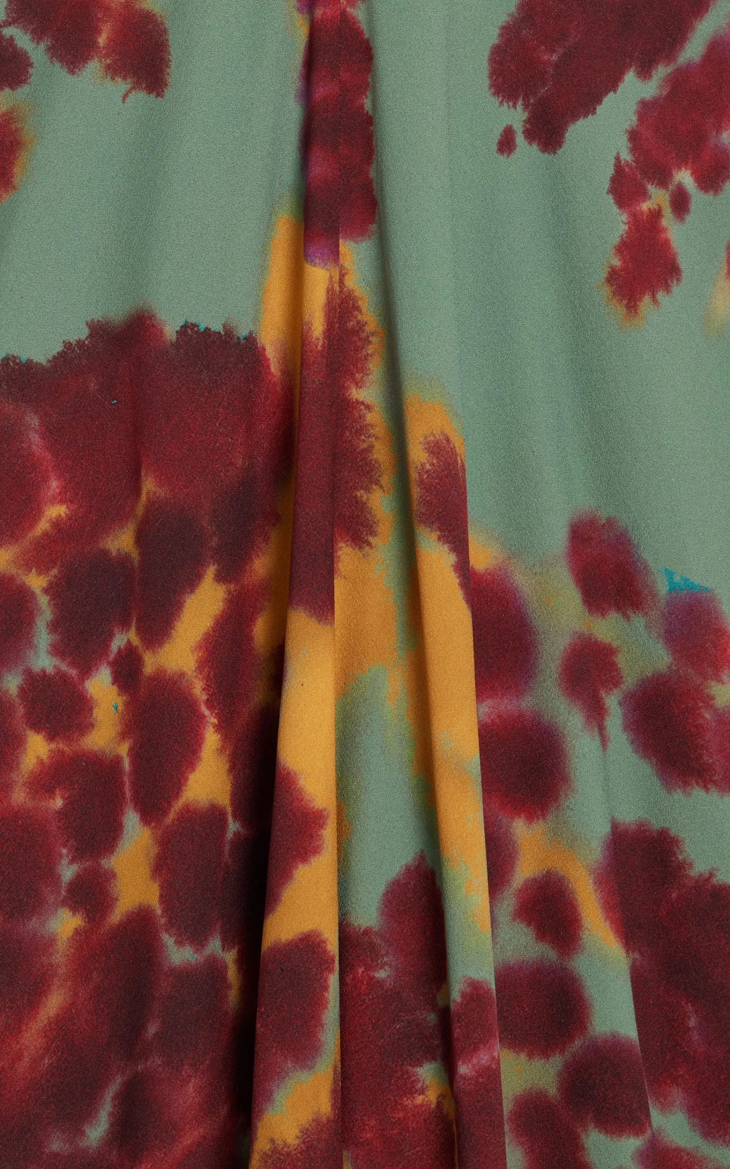 Designed with a multi-colored print, this dress features a plunging v-neck that’s perfect for showcasing your favorite necklaces. Take a cue from the runway and style with a pair of chunky sole boots. Complete your outfit with a white oversized clutch and small earrings.