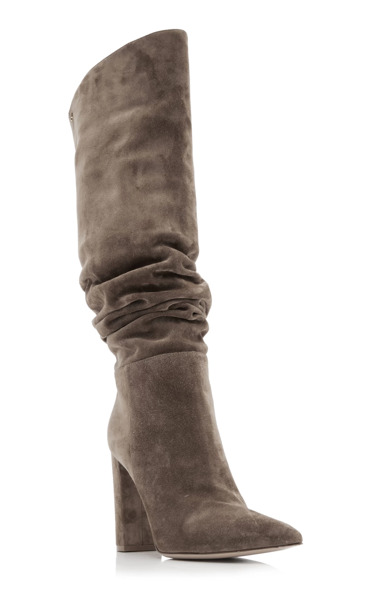 The ‘Piper’ boots have a slouchy silhouette made from buttery suede with pointed toes and a thick block heel for all-day comfort. The camel shade pairs with just about everything.