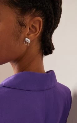 Handmade from exquisite keshi pearls, these ‘Rainy Day’ stud earrings are adorned with dangling briolette-cut white topaz raindrops. Sweep your hair into an updo to show them off properly.