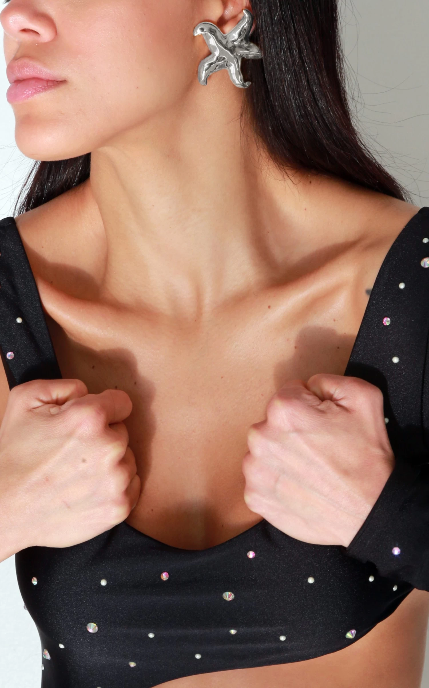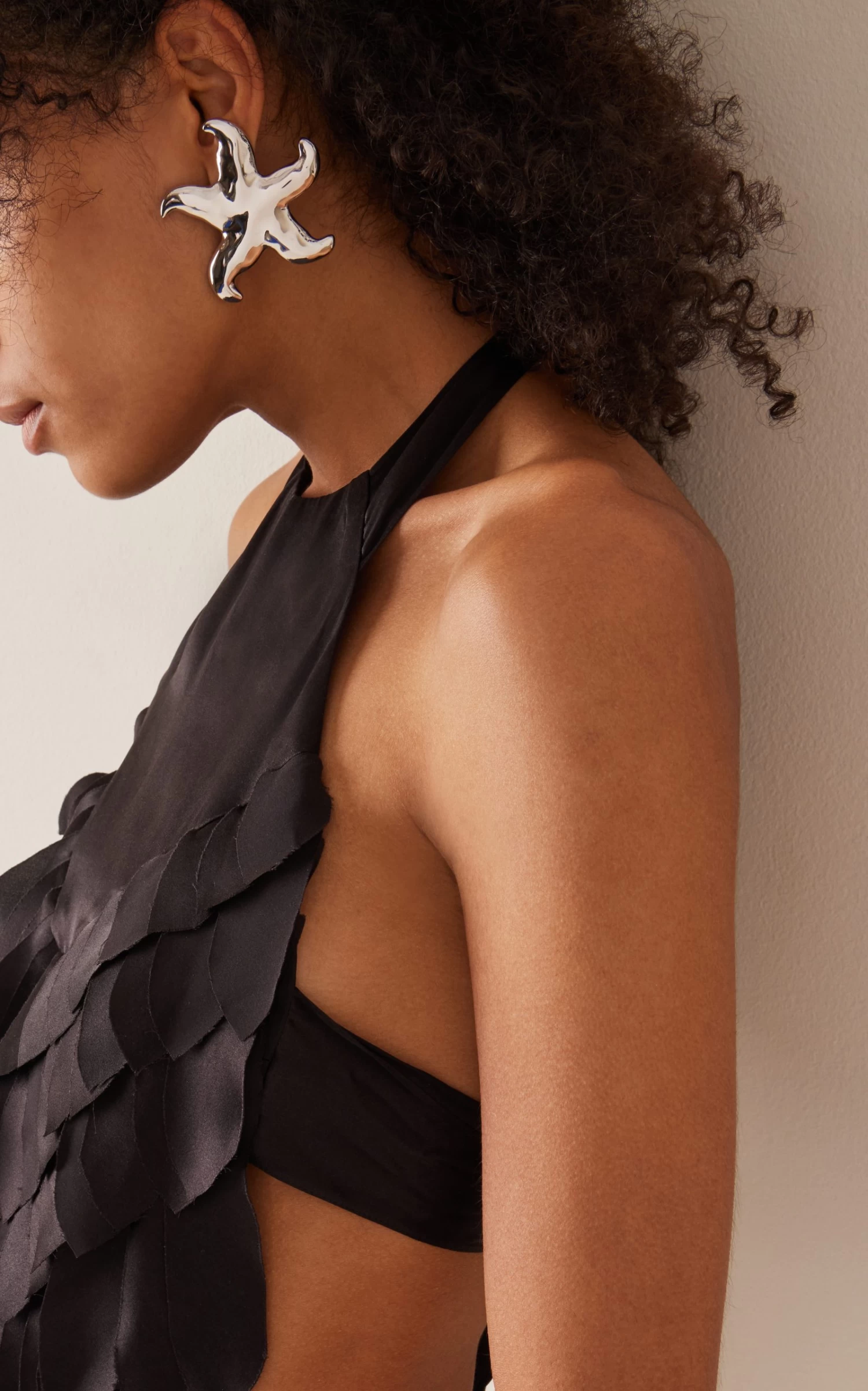 The ‘St. Barths’ earrings feature large starfish studs cast from polished rhodium-plated brass.
