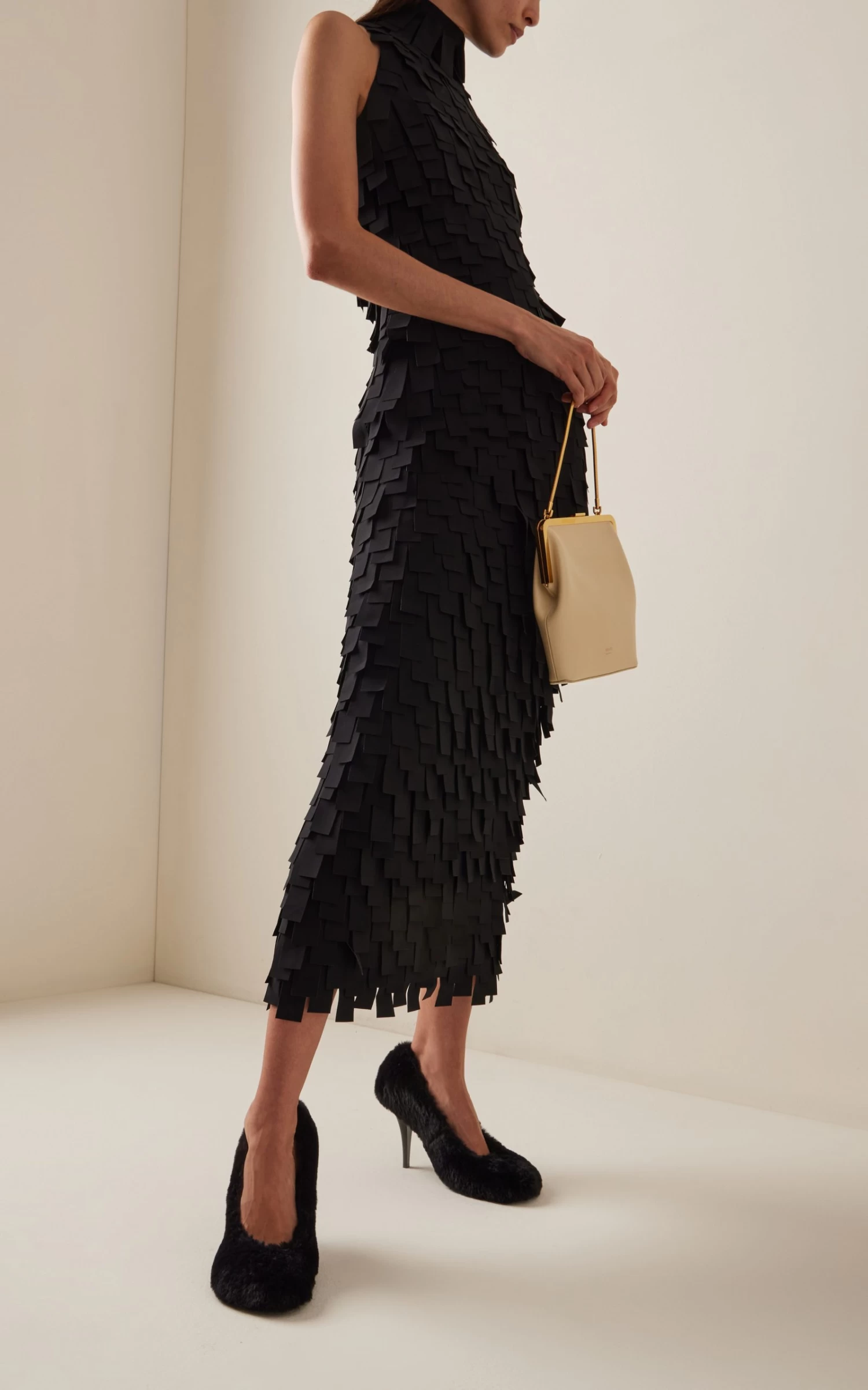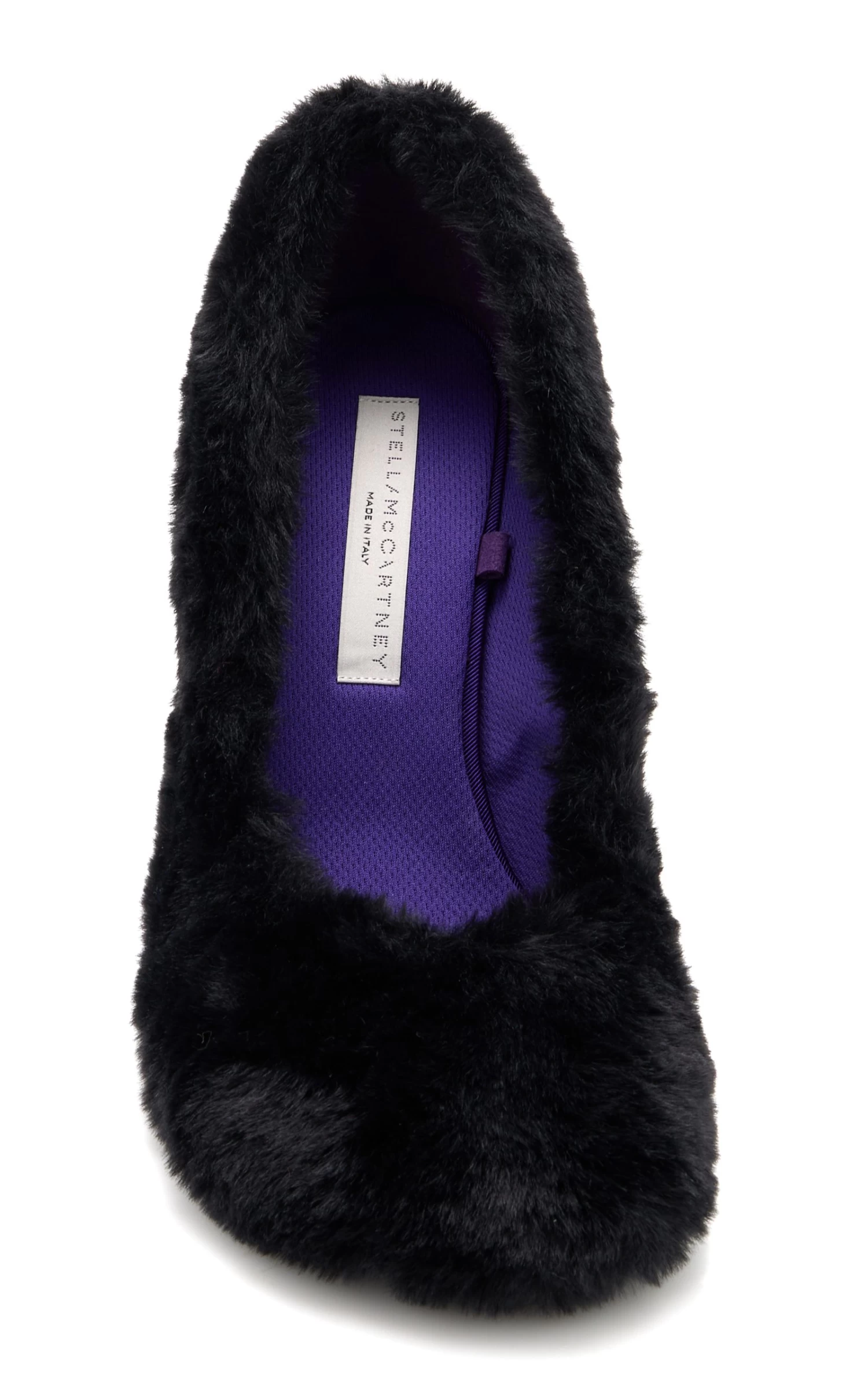Consciously made from a shaggy vegan alternative to animal fur, the ‘Ryder’ stiletto heels feature moulded toe shapes similar to hooves.