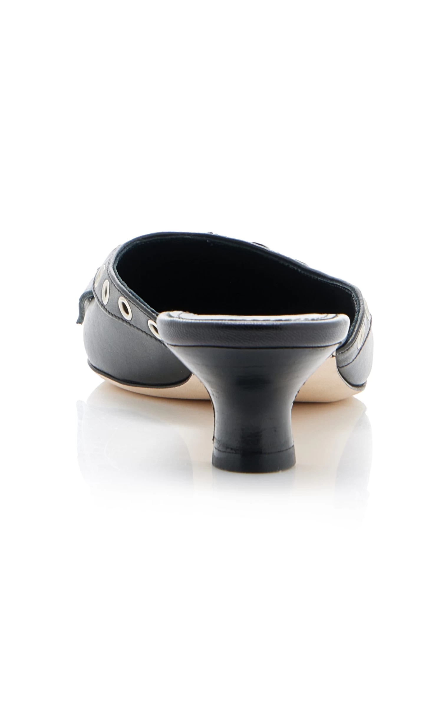 The ‘Tania’ mule is made from smooth leather into a sleek, pointed silhouette detailed by grommet studs and leather fringe along the toe box. Style yours with wide-leg trousers and a blazer for an elevated work look.