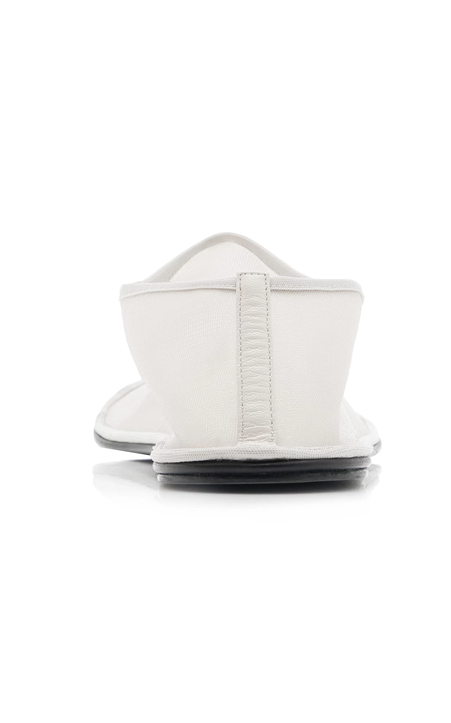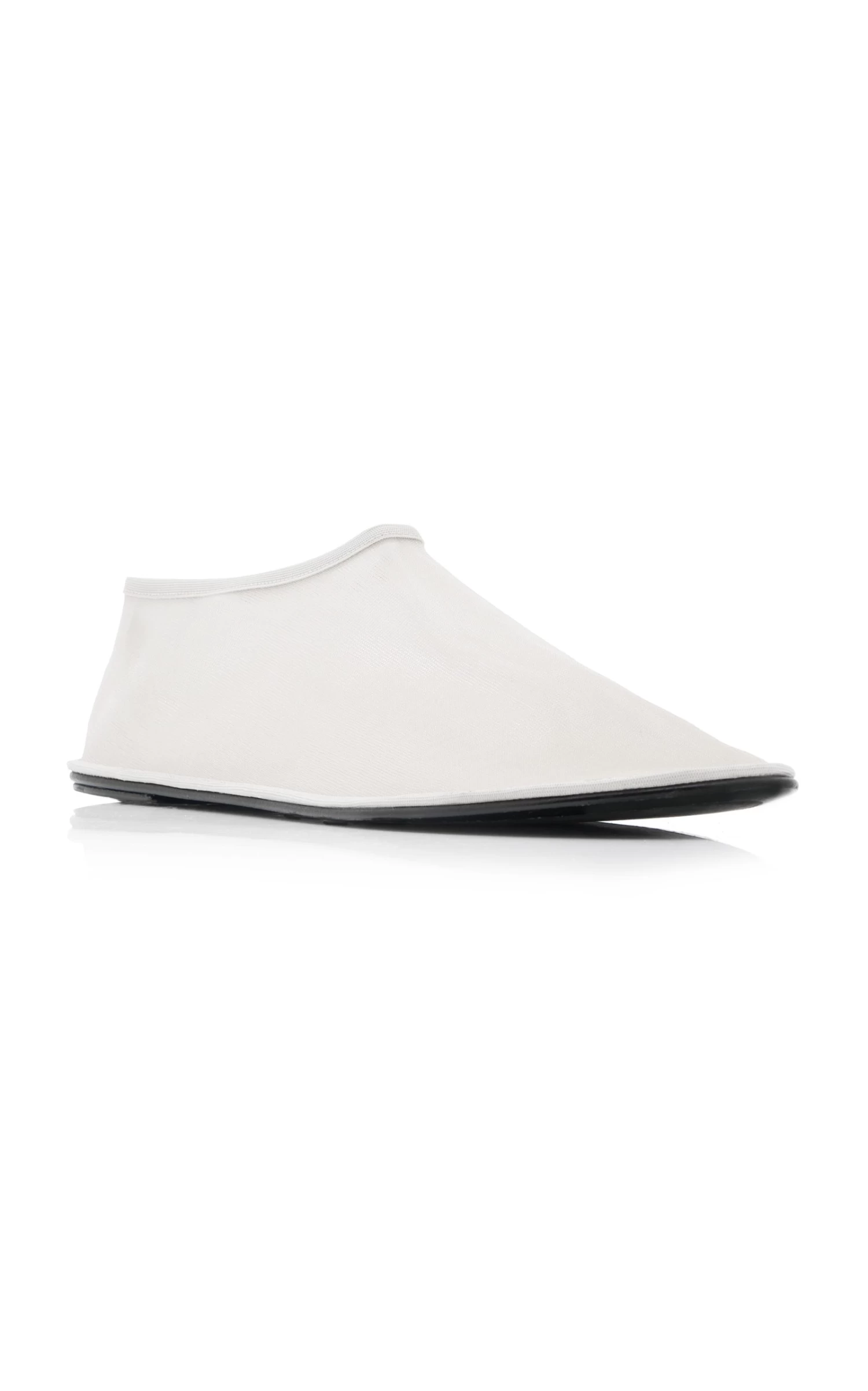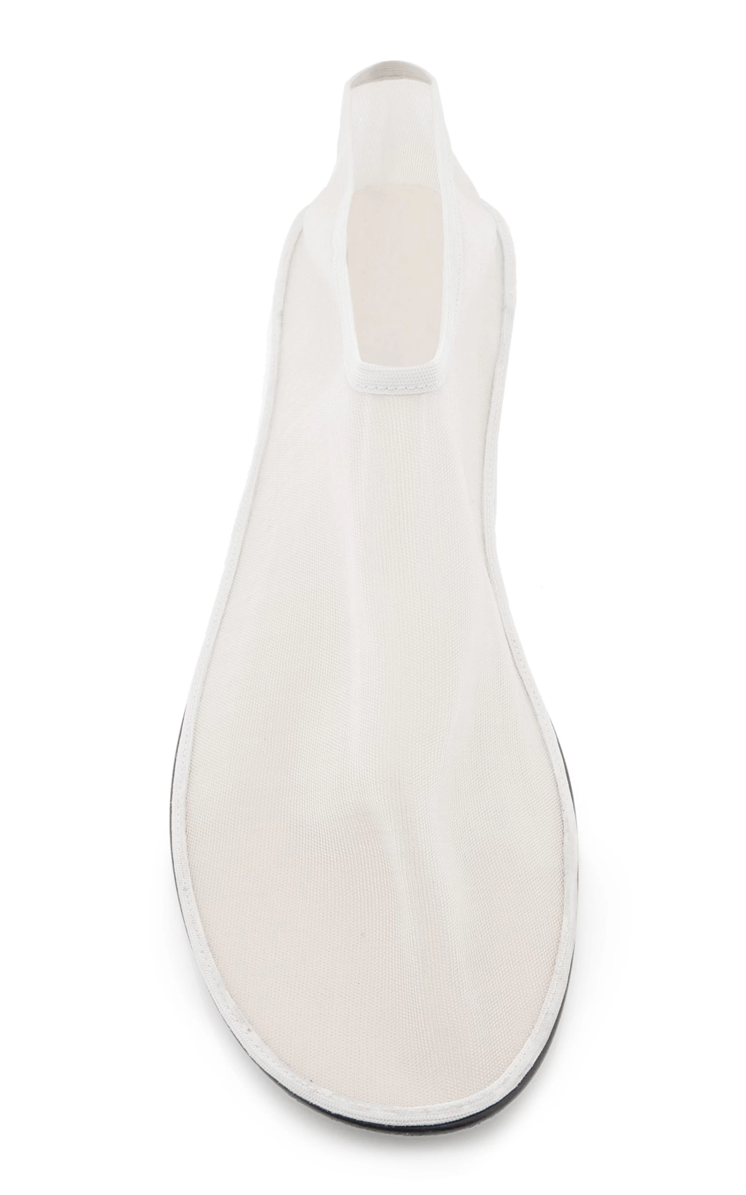 These flats have a round-toe silhouette made from sheer nylon-mesh that hugs the foot like a sock. Wear them to dress down the label’s precise tailoring.