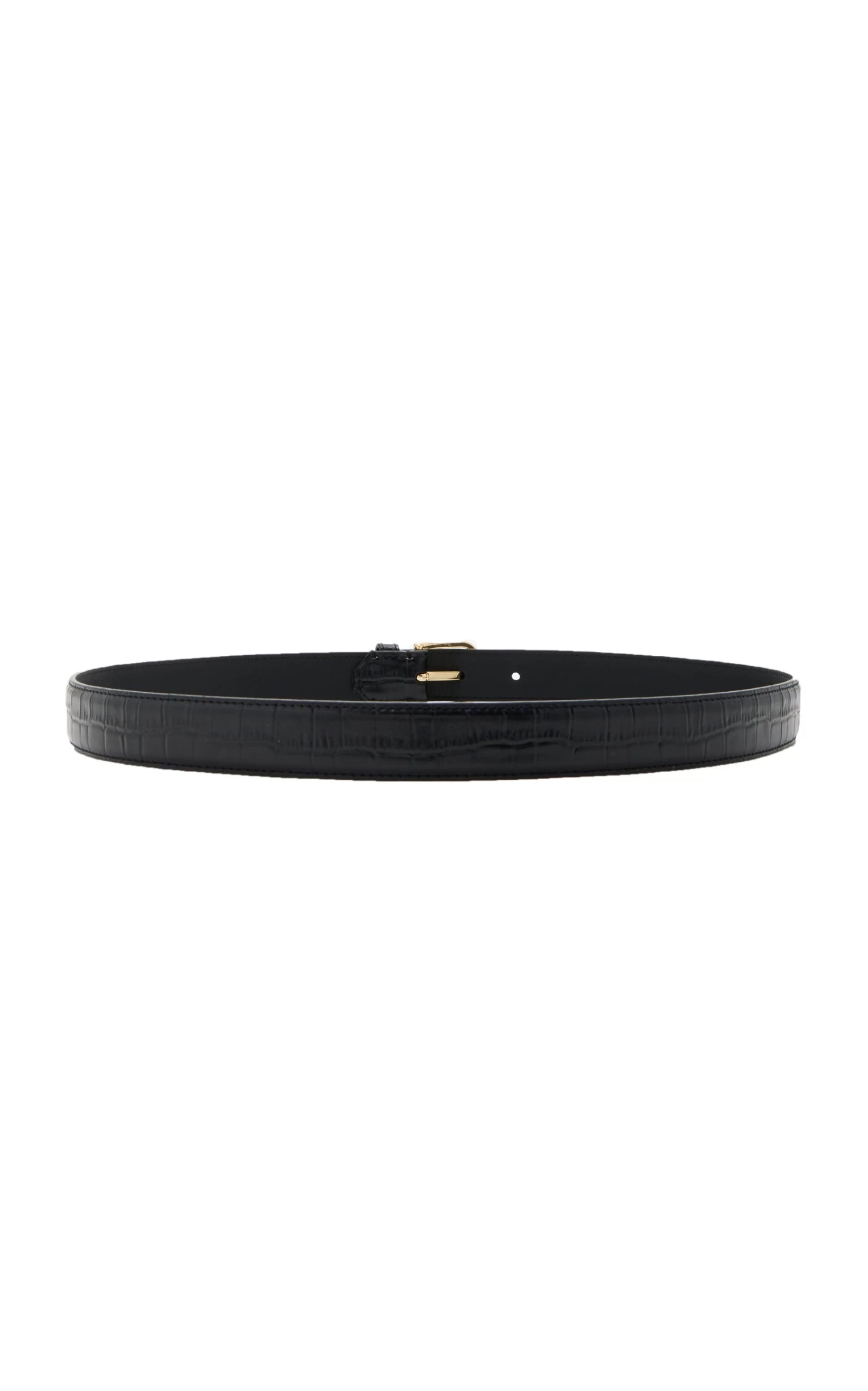 Totême’s’ slim belt is made from calf leather and embossed with a croc pattern. It’s finished with gold hardware, perfect for jeans or cinching in a shift dress.