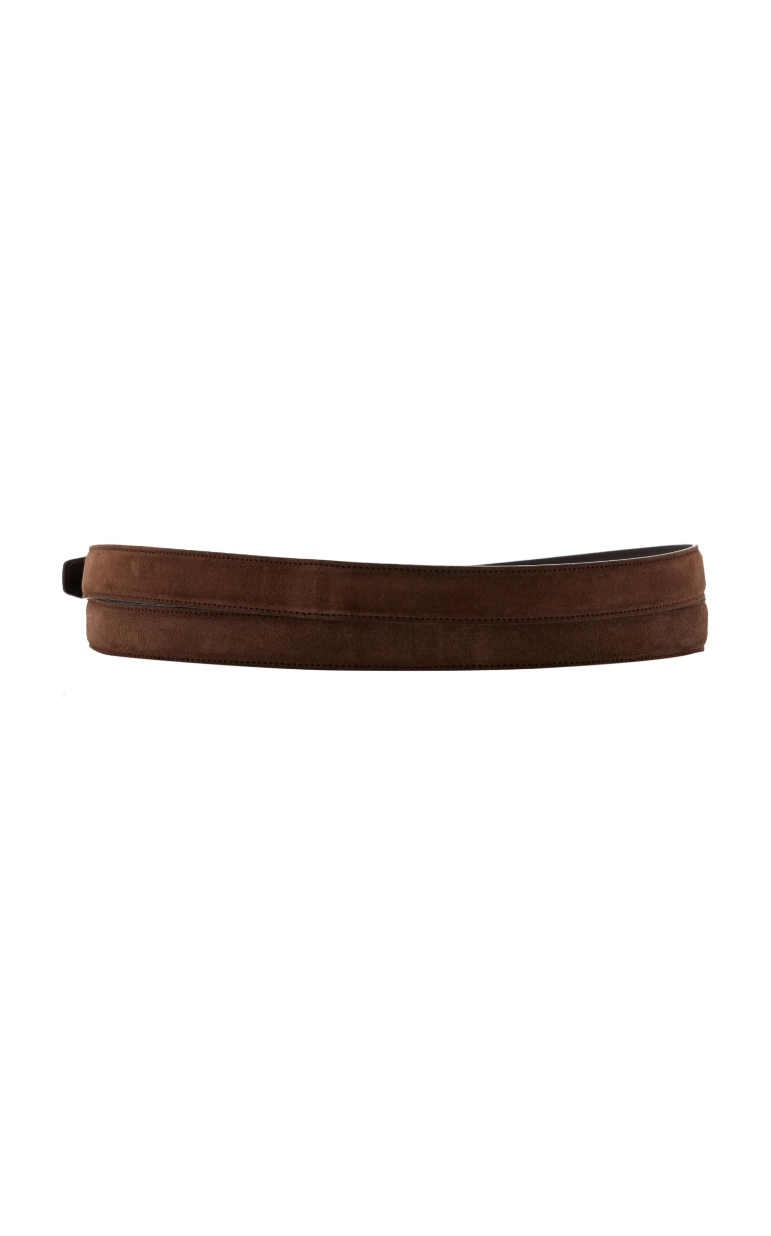 Totême’s’ ‘Wrap’ belt is made from brown calf suede in an extra long length designed to wrap the waist more than once. It’s finished with gold hardware, perfect for cinching a chunky sweater or shift dress.