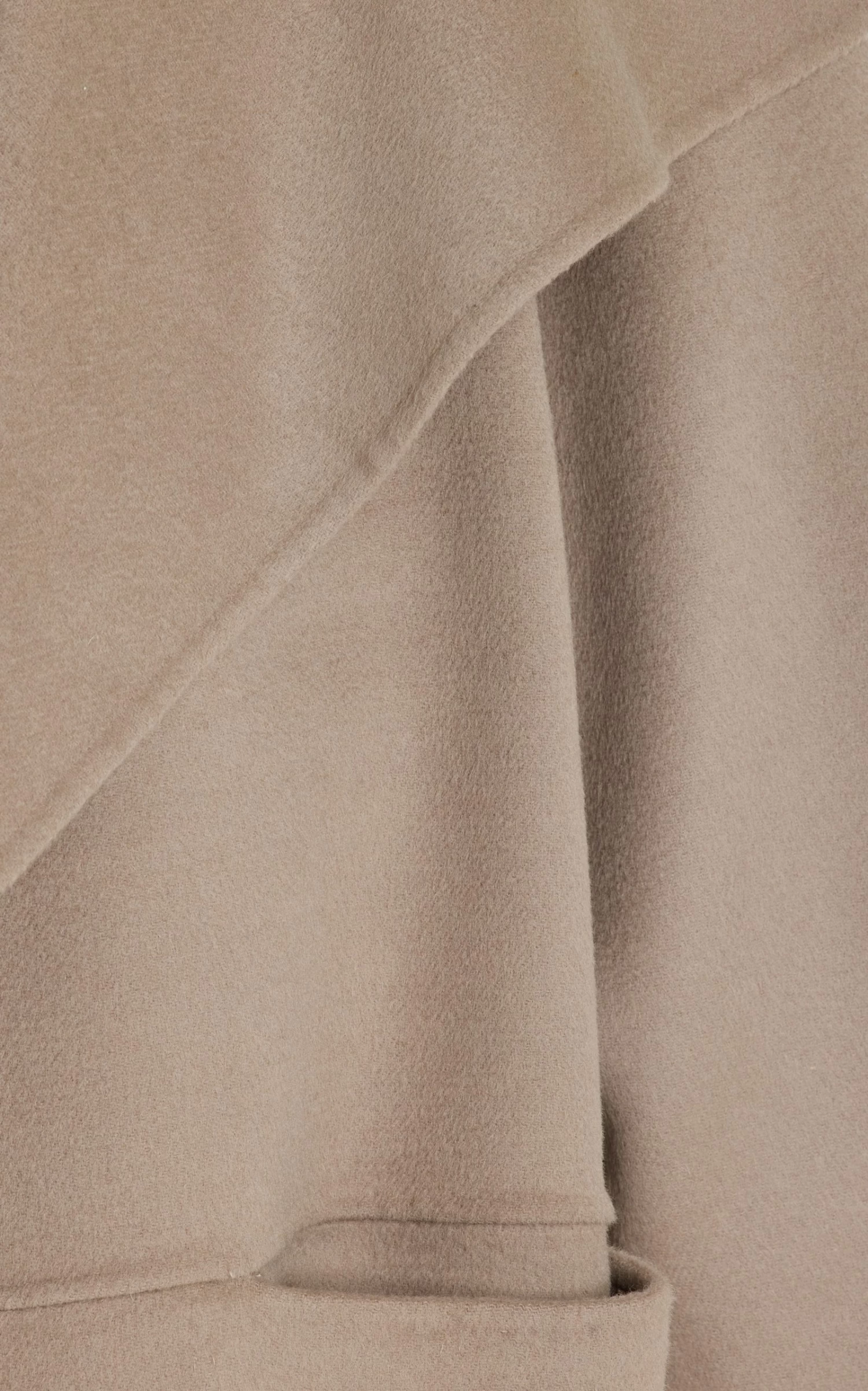 The label’s signature coat has an oversized fit made from its doublé fabric – a blend of responsibly sourced wool and cashmere that’s created by hand-stitching two fine layers together to achieve a double-faced finish with clean seams. The open front makes it perfect for layering.