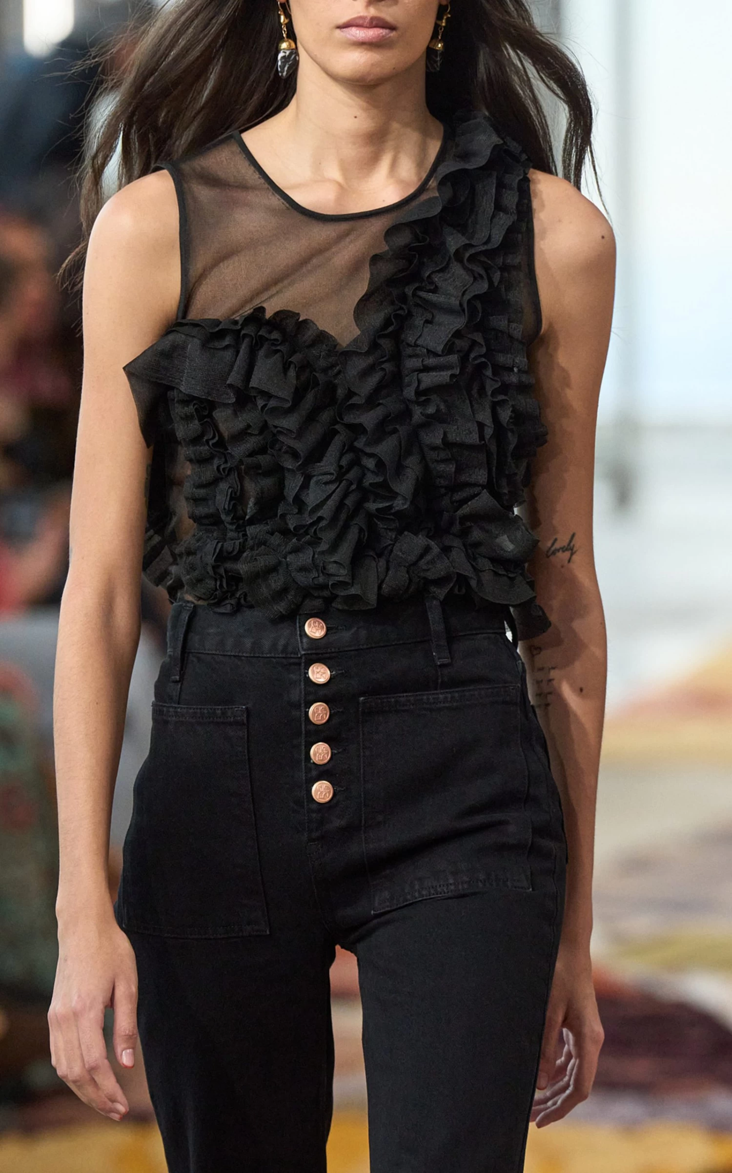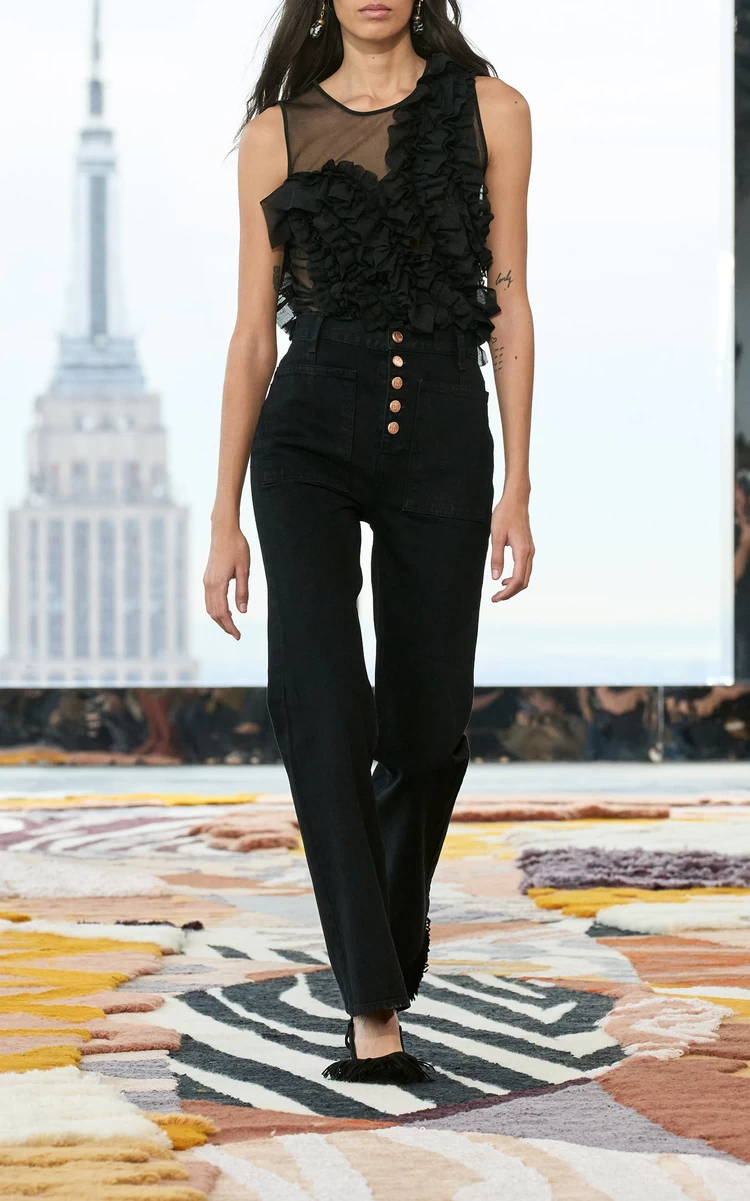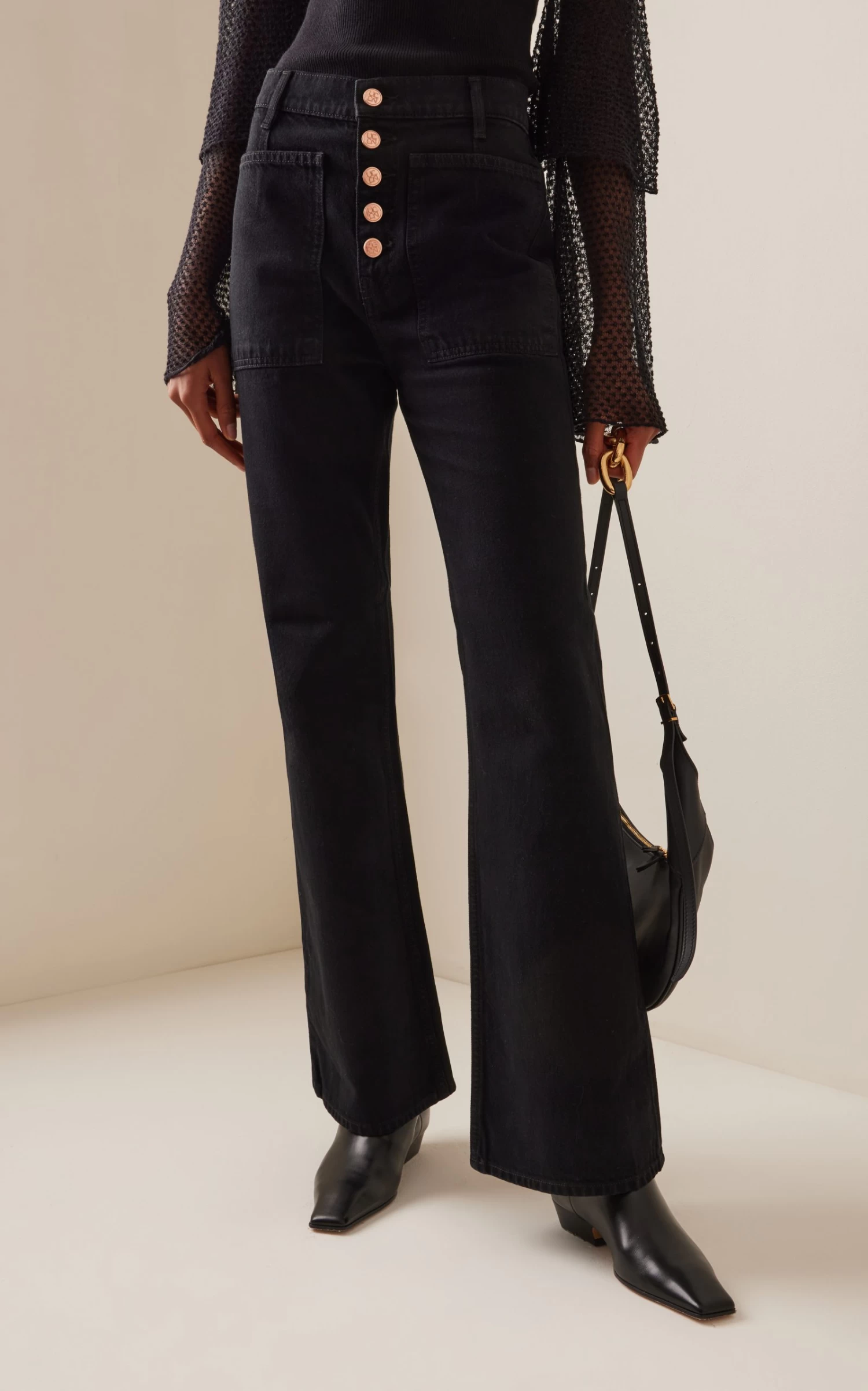 Handmade in Los Angeles, the ‘Lou’ jeans have a ’70s feel with their patch pockets, exposed buttoned fly, and flared leg. They work just as well with a tee as they do an evening top.