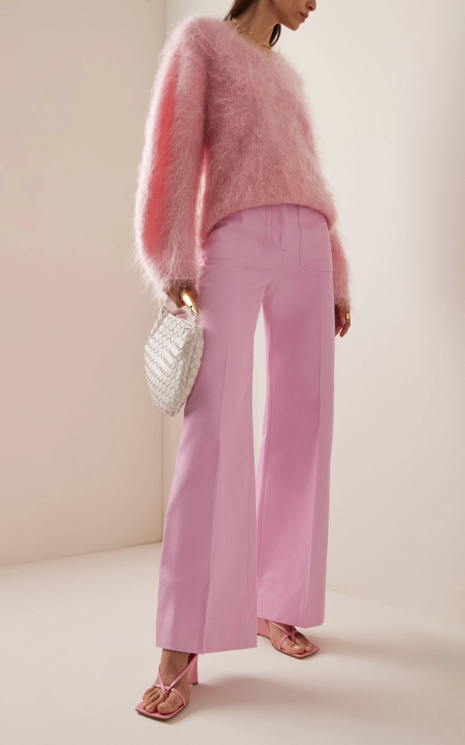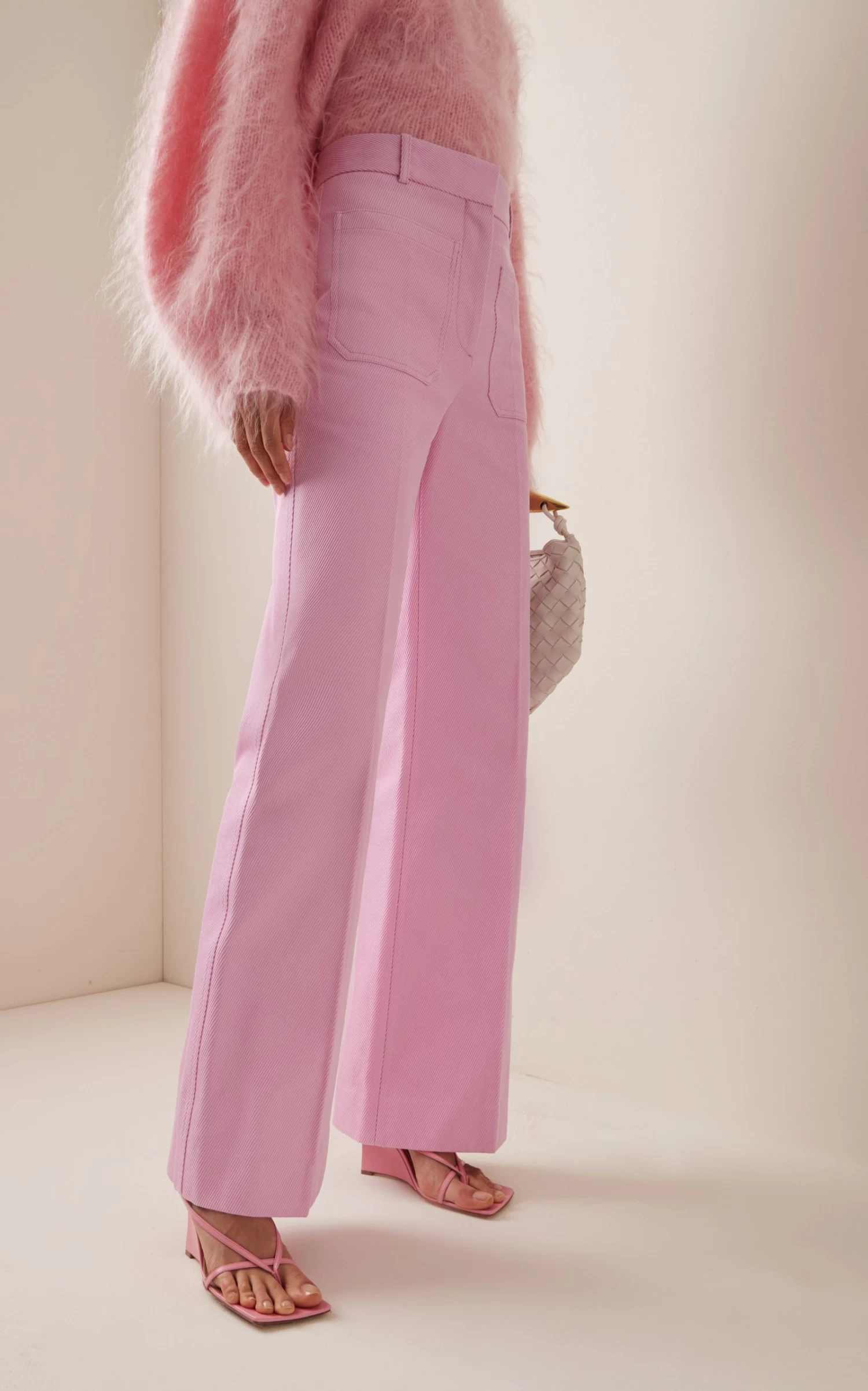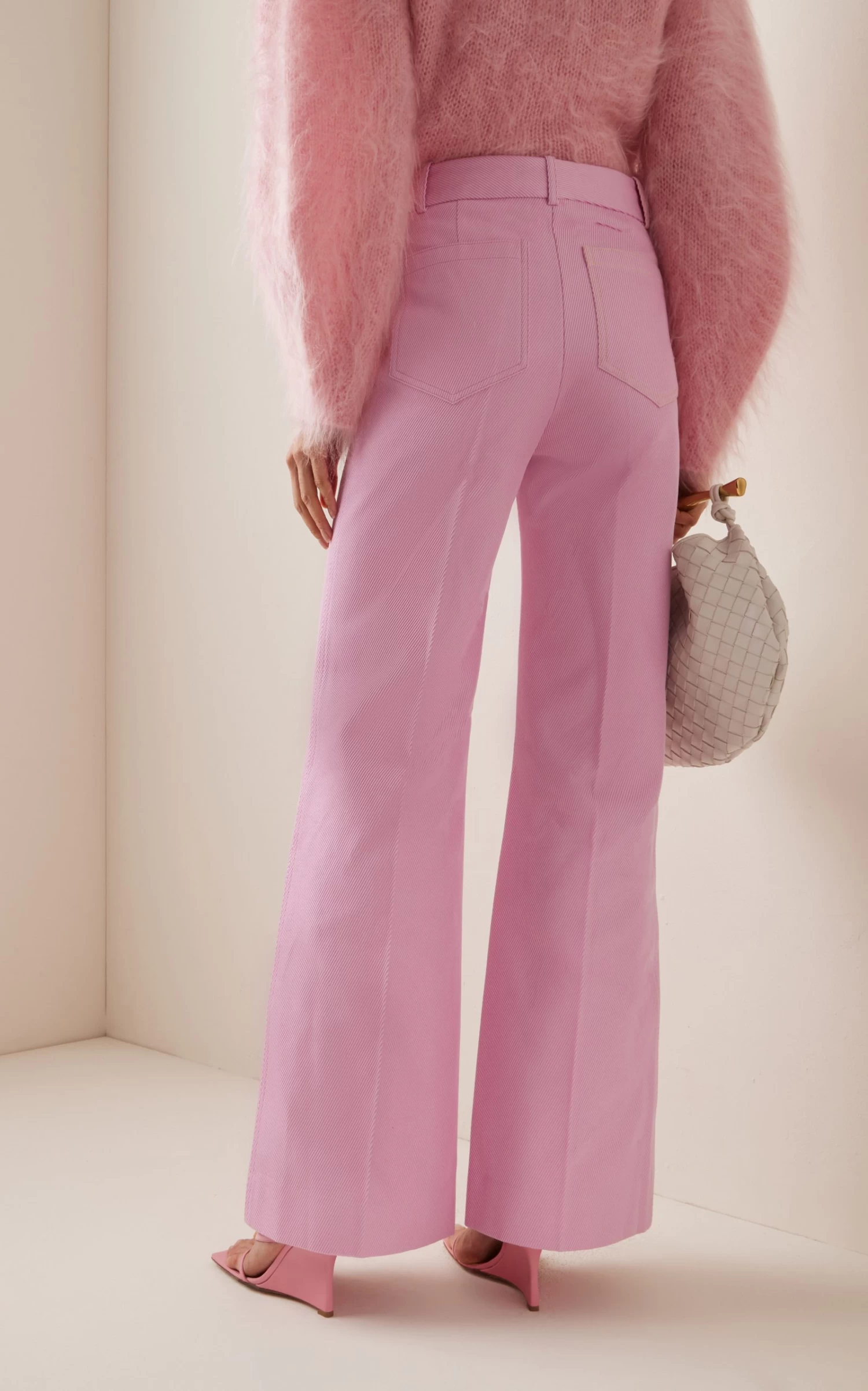 The ‘Alina’ pants are made from a ribbed cotton into a mid-waist, flare silhouette finished with a pocket detail and front pleating. Style with a blazer and slingback pumps for chic office-wear.