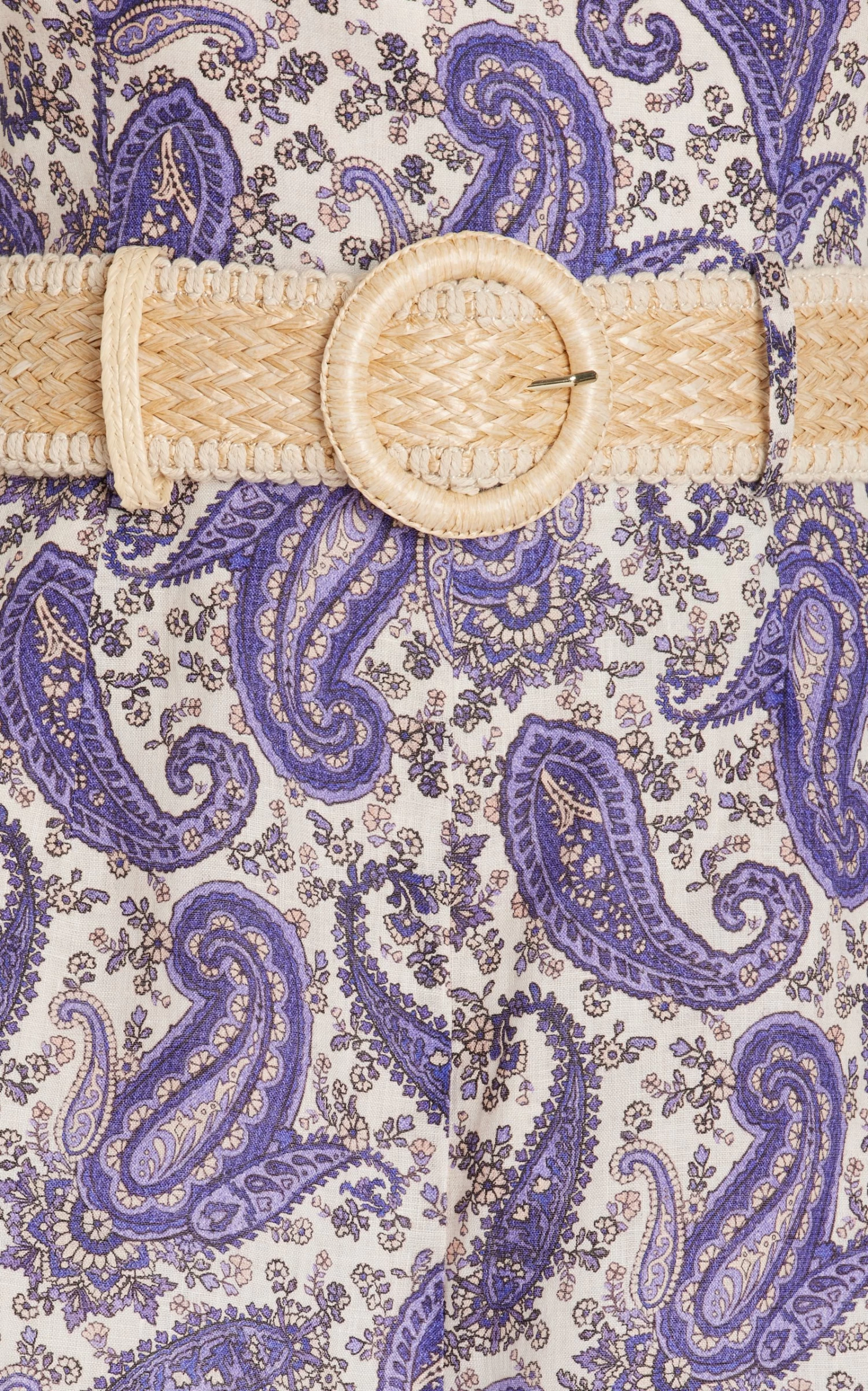 Cut from paisley printed linen, the ‘Devi’ jumpsuit has a strapless, fitted bodice and wide-cut, cropped leg silhouette. Style with its woven belt to cinch the waist.